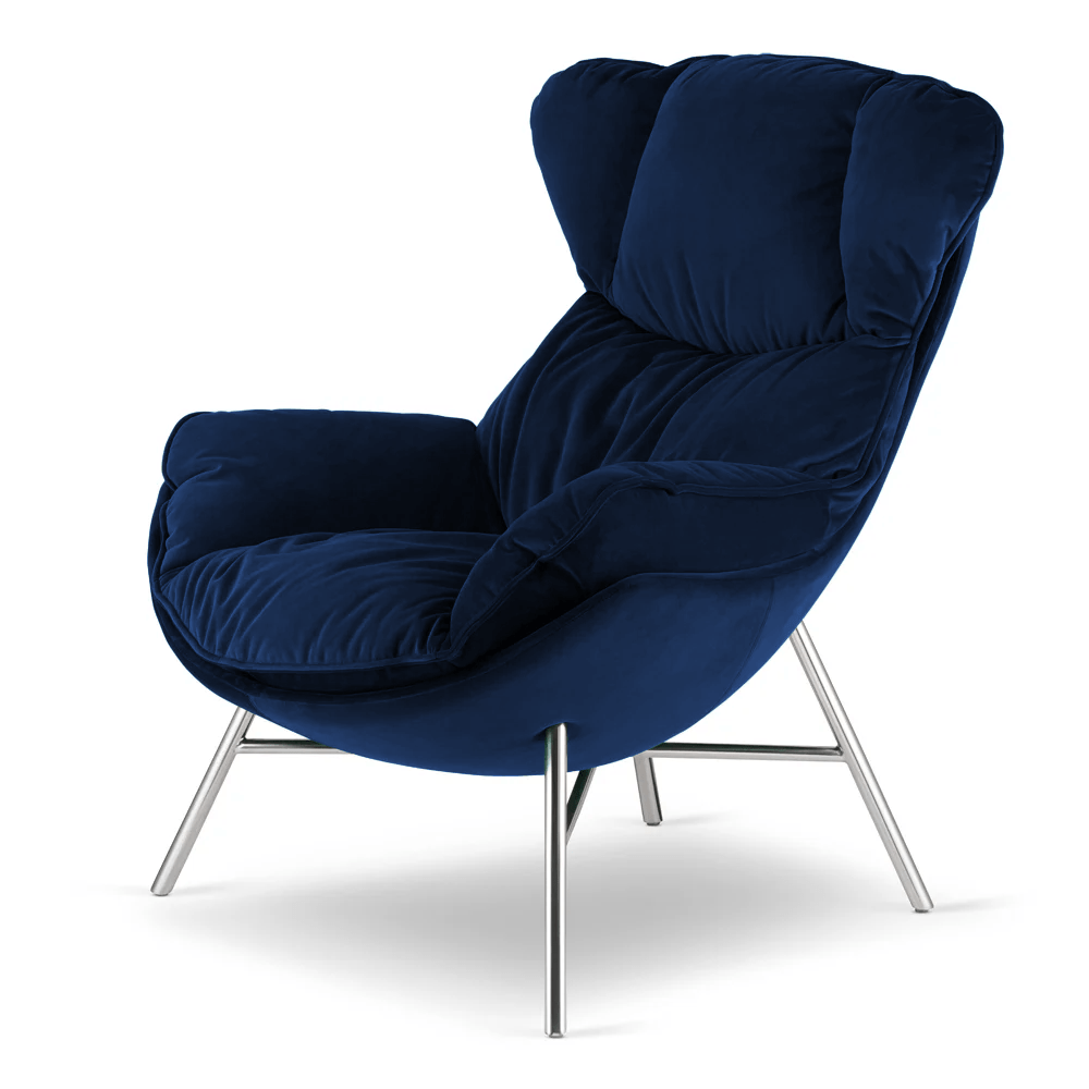 Ciemnogranatowy kolor sprawia, że fotel pasuje do różnorodnych aranżacji – od nowoczesnych, przez klasyczne, aż po loftowe wnętrza z mocnymi akcentami kolorystycznymi.