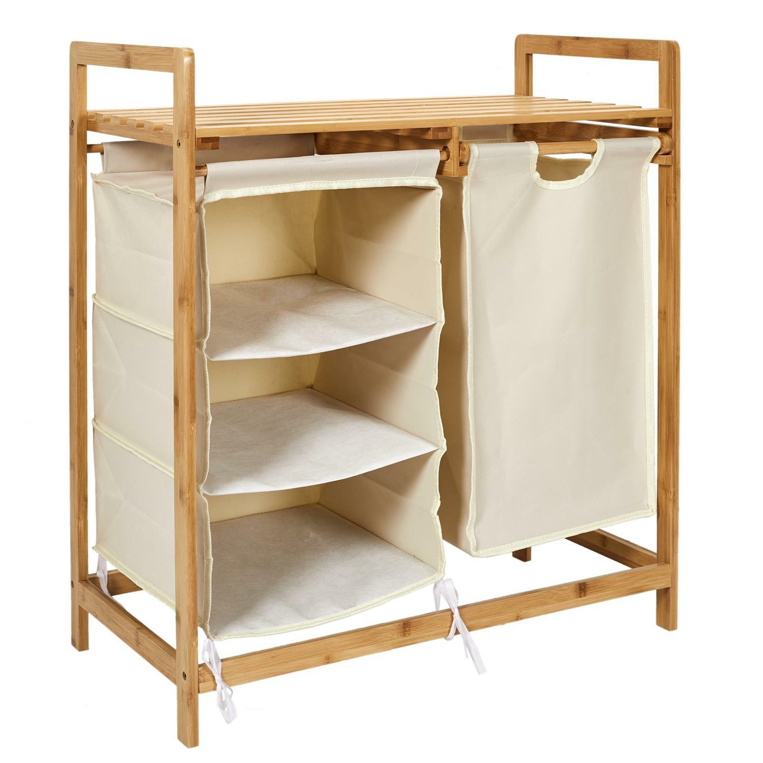 Komoda idealna do porządkowania prania oraz ręczników. Komoda sprawdzi się nie tylko w pralni czy łazience w stylu naturalnym. Może ona służyć jako miejsce do organizowania ręczników w salonie masażu lub w SPA. Wykonana z bambusowej ramy komoda wyposazona jest w 3 półki z tkaniny bawełnianej oraz sporej szuflady również z materiału. Wiewrzch komody wykończomny został drewnianym blatem. Komoda wymaga montażu. Max. obciążenie na półkę 3kg.