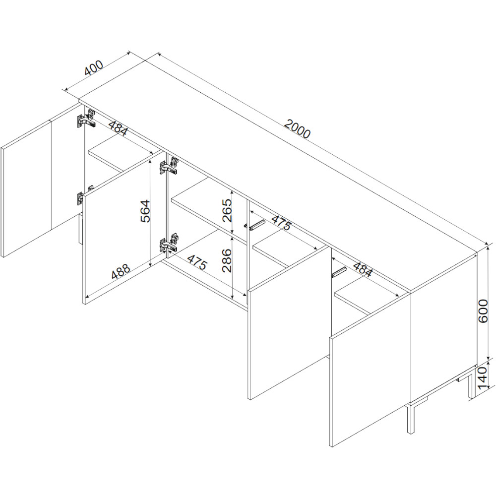 Materiał: Płyta meblowa laminowana 16mm, płyta MDF 16mm
