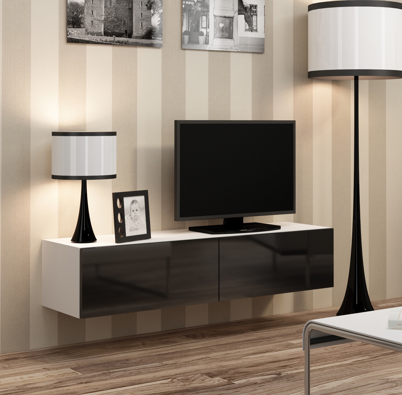 Komoda RTV 140 GOVI VG4B biały / czarny połysk