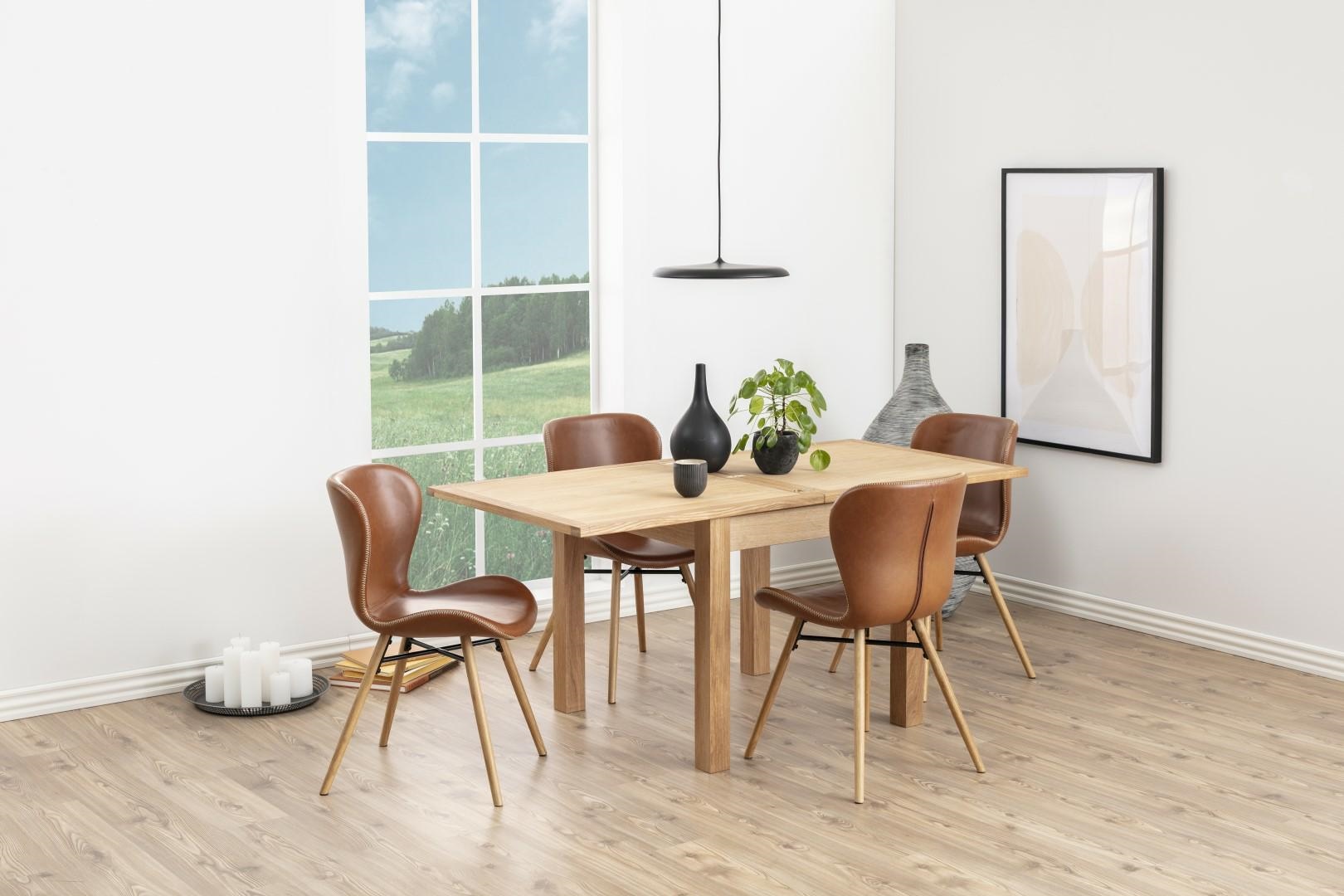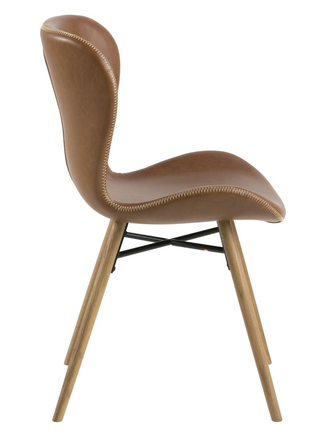 Krzesło Batilda Retro Brandy to doskonałe rozwiązanie do salonu czy jadalni. Solidna podstawa wykonana z olejowanego drewna dębowego, wzmocniona metalowym krzyżakiem zapewni stabilność podczas użytkowania. Siedzisko z eko skóry w kolorze jasno brązowym z grubszym obszyciem wygląda bardzo efektownie. Krzesło jest dośc lekkie, gdyż waży 6,15 kg. Jego maksymalne obciążenie to 120 kg. Maksymalna ilość szt. w pudełku: 2 Wysokość siedziska: 46,5 cm Szerokość siedziska: 47 cm Głębokość siedziska: 40 cm