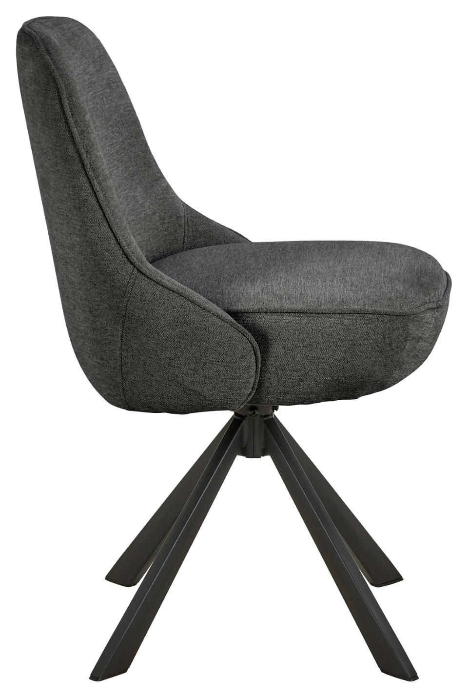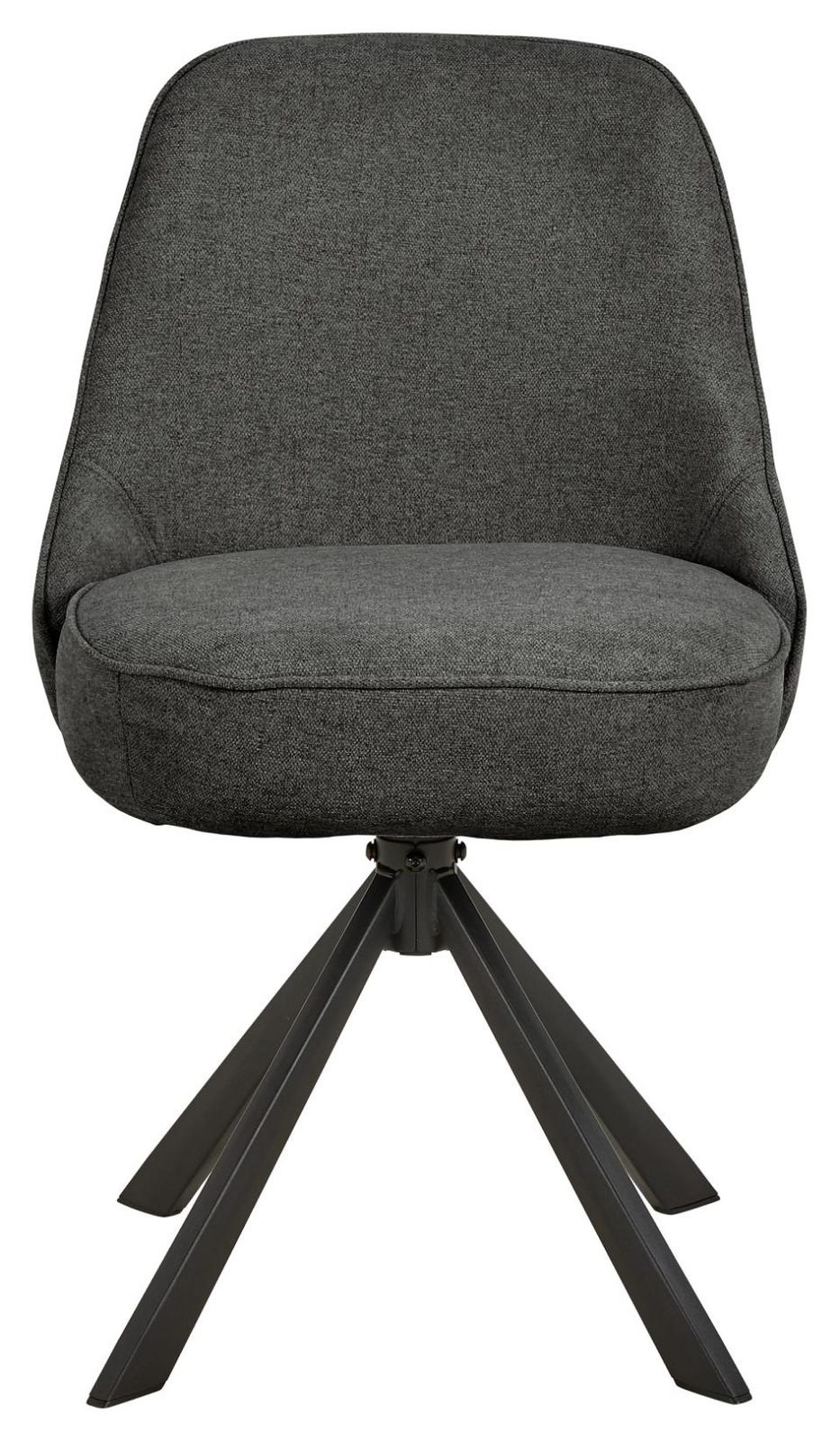 Zaokrąglone kształty i lamówki nadają temu krzesłu przytulnego charakteru. Ulepszone sprężynami kieszeniowymi krzesło zapewnia doskonały komfort siedzenia. Ciemnoszara tapicerka szenilowa charakteryzuje się miękkością. W połączeniu z czarną, 4-ramienną podstawą ze stali, siedzisko można łatwo obracać dzięki funkcji obrotowej.