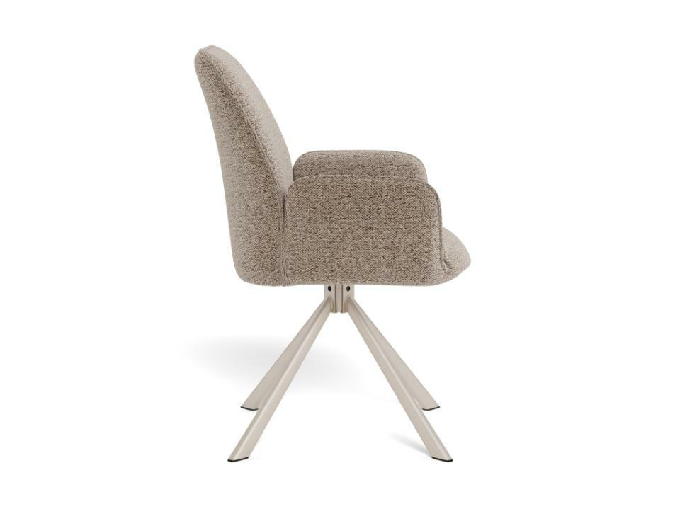 Krzesło do jadalni Glenda z podłokietnikiem, tkanina Basel beżowa 24, 4-ramienna podstawa z szarej, surowej stali malowanej proszkowo, z siedziskiem obrotowym.