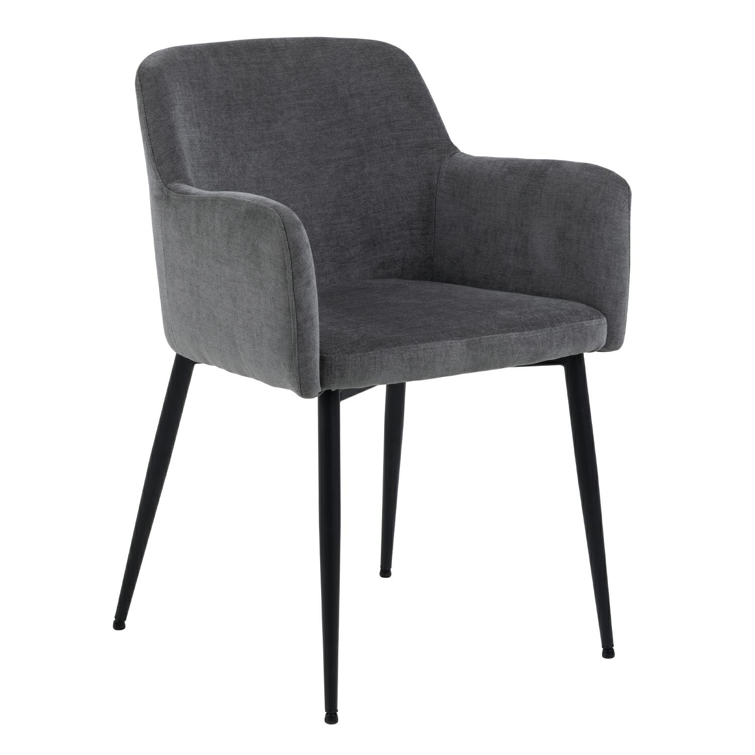 Krzesło Karen to prosty, a zarazem bardzo wygodny mebel idealny do jadalni, sali konferencyjnej bądź salonu. Uwagę zwraca kubełkowa forma oparcia połączonego z podłokietnikami i siedziskiem. Wypełnienie krzesła stanowi pianka poliuretanowa tapicerowana tkaniną Danny fabric dark grey 18. Nogi krzesła wykonane są z metalu malowanego proszkowo na kolor czarny. Od spodu zostały zabezpieczone nakładkami przeciwko niszczeniu podłogi. Ilość kartonów: 1 Wymiary kartonów: 74,5×72,4x54cm Waga kartonów: 8kg