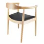 Miękkie siedzisko krzesła KING wyściełane jest czarno skórą ekologiczną, a dodatkowy komfort wzmacniają drewniane podłokietniki.