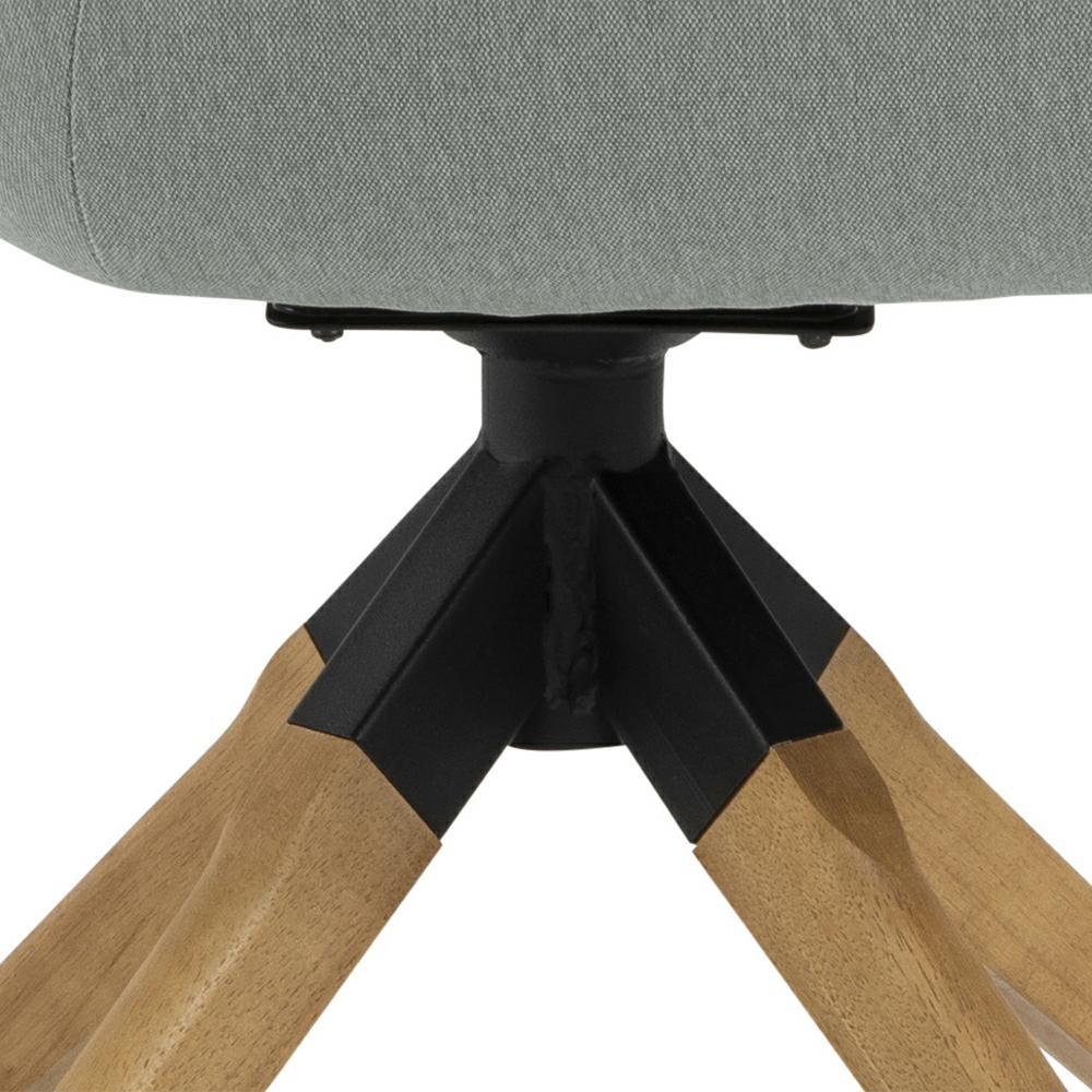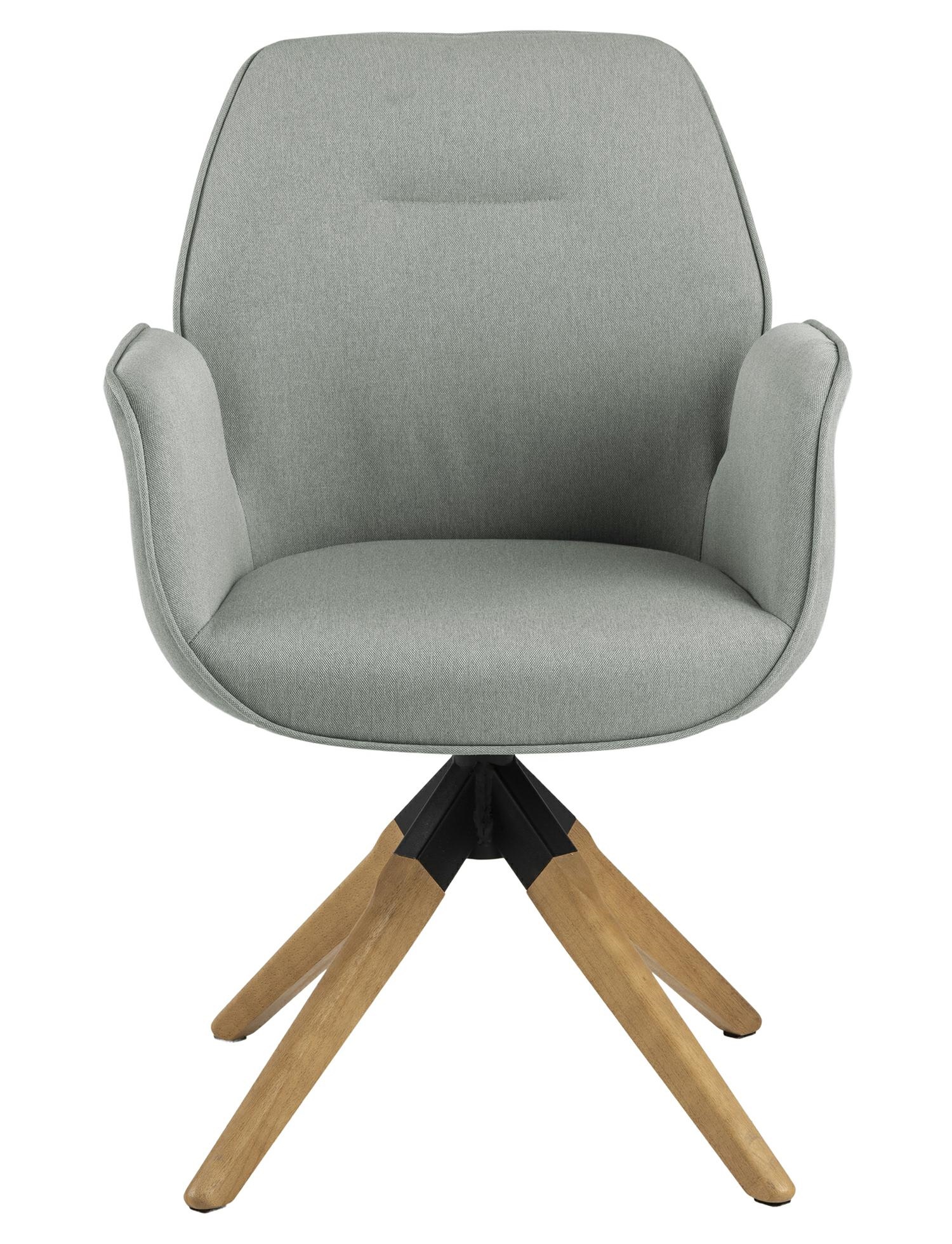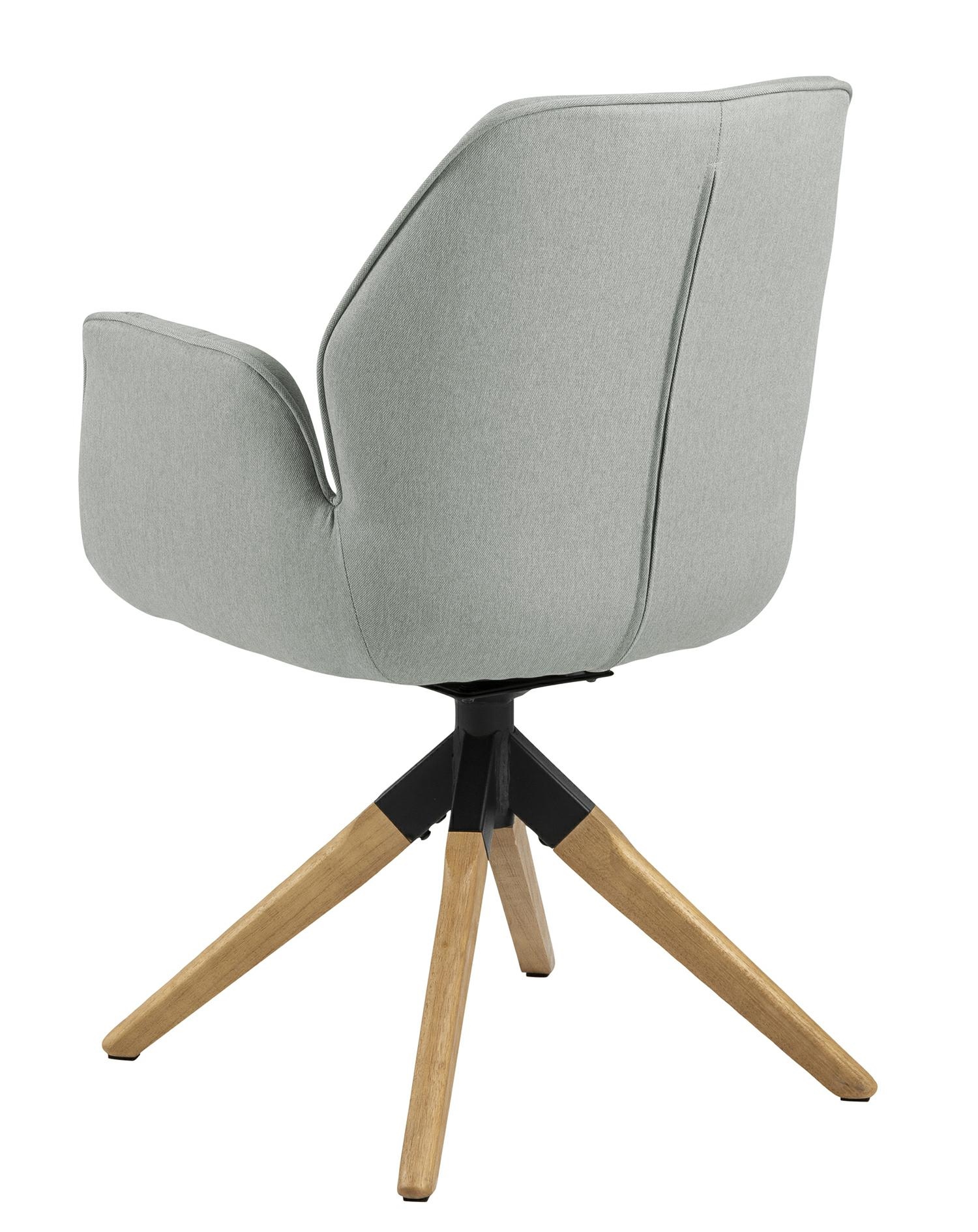 Krzesło w skandynawskim stylu Aura jest niezwykle efektownym i wygodnym siedziskiem. Odpowiednio wyprofilowane siedzisko zostało obite miękką pianką tapicerską oraz tkaniną Town light grey 13. Tkanina krzesła jest łatwa w utrzymaniu w czystości. Ciepły odcień szarości sprawi, że wnętrze jadalni lub salonu stanie się ciepłym i przytulnym. Podłokietniki o optymalnej wysokości zostały wyprofilowane na zewnątrz, aby spotęgować komfort siedzenia. Podstawą krzesła są cztery nogi z litego i olejowanego drewna kauczukowego. Nogi krzesła wychodzą z jednego wspólnego punktu i rozchylają się dość szeroko, aby zagwarantować stabilizację. Siedzisko krzesła jest obrotowa. Funkcję tą zawdzięcza czarnemu, metalowemu mechanizmowi, który prócz funkcji obrotu łączy również krzesła z siedziskiem. Wymiary kartonu: 77x42x62cm Max. ilość szt w kartonie: 1 Waga: 12kg