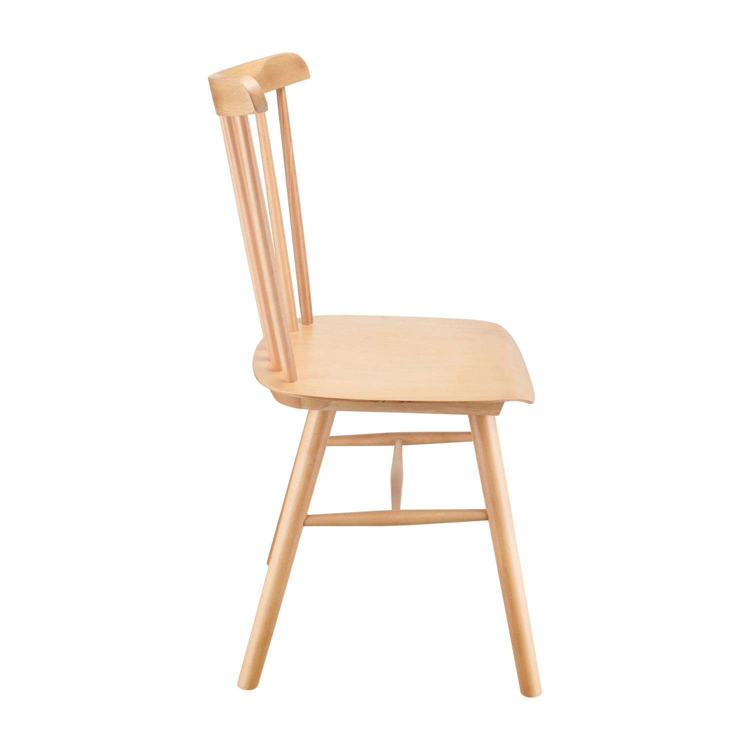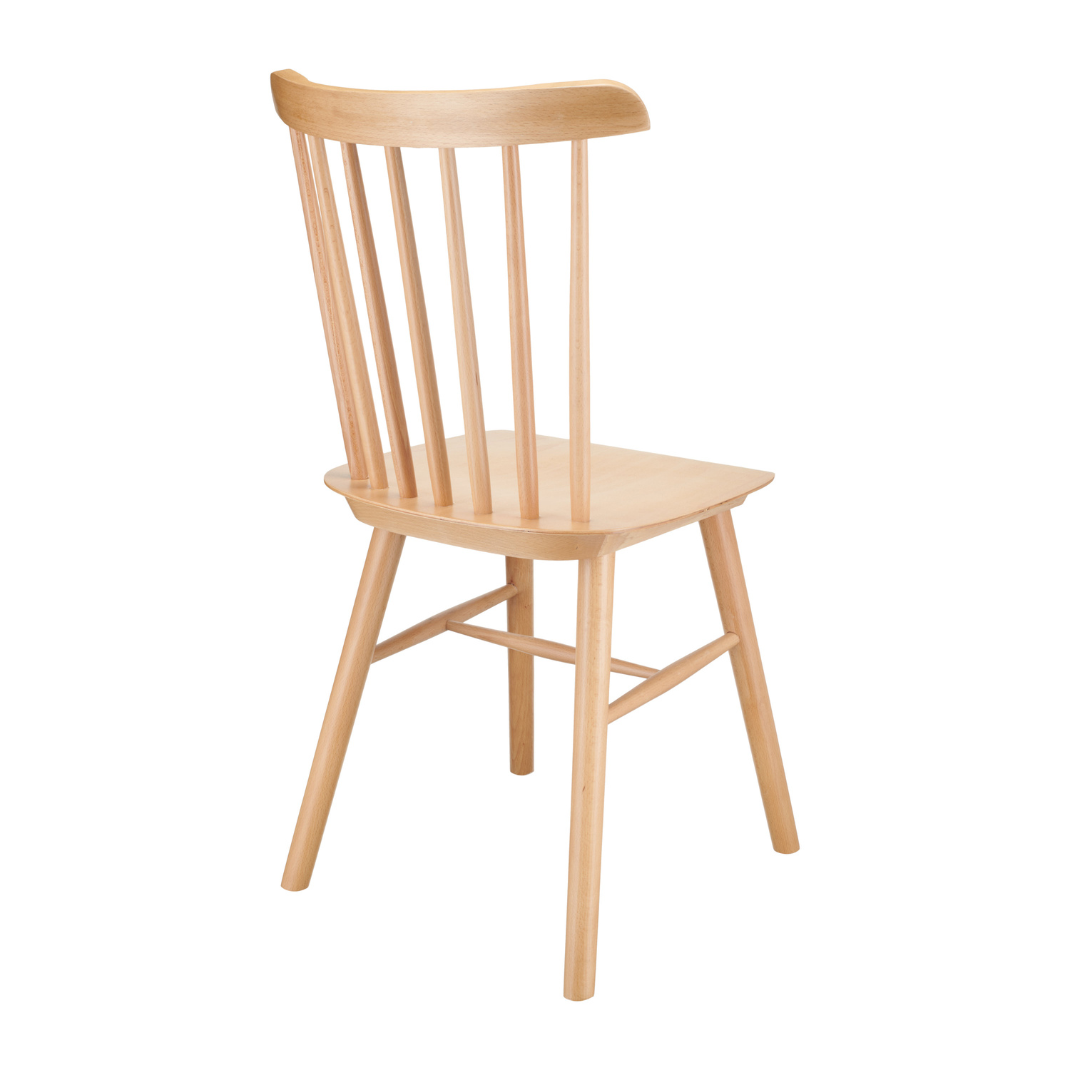 Wygodne oparcie krzesła STICK z profilowanego drewna uzupełnione jest siedmioma ażurowymi okrągłymi szczebelkami.