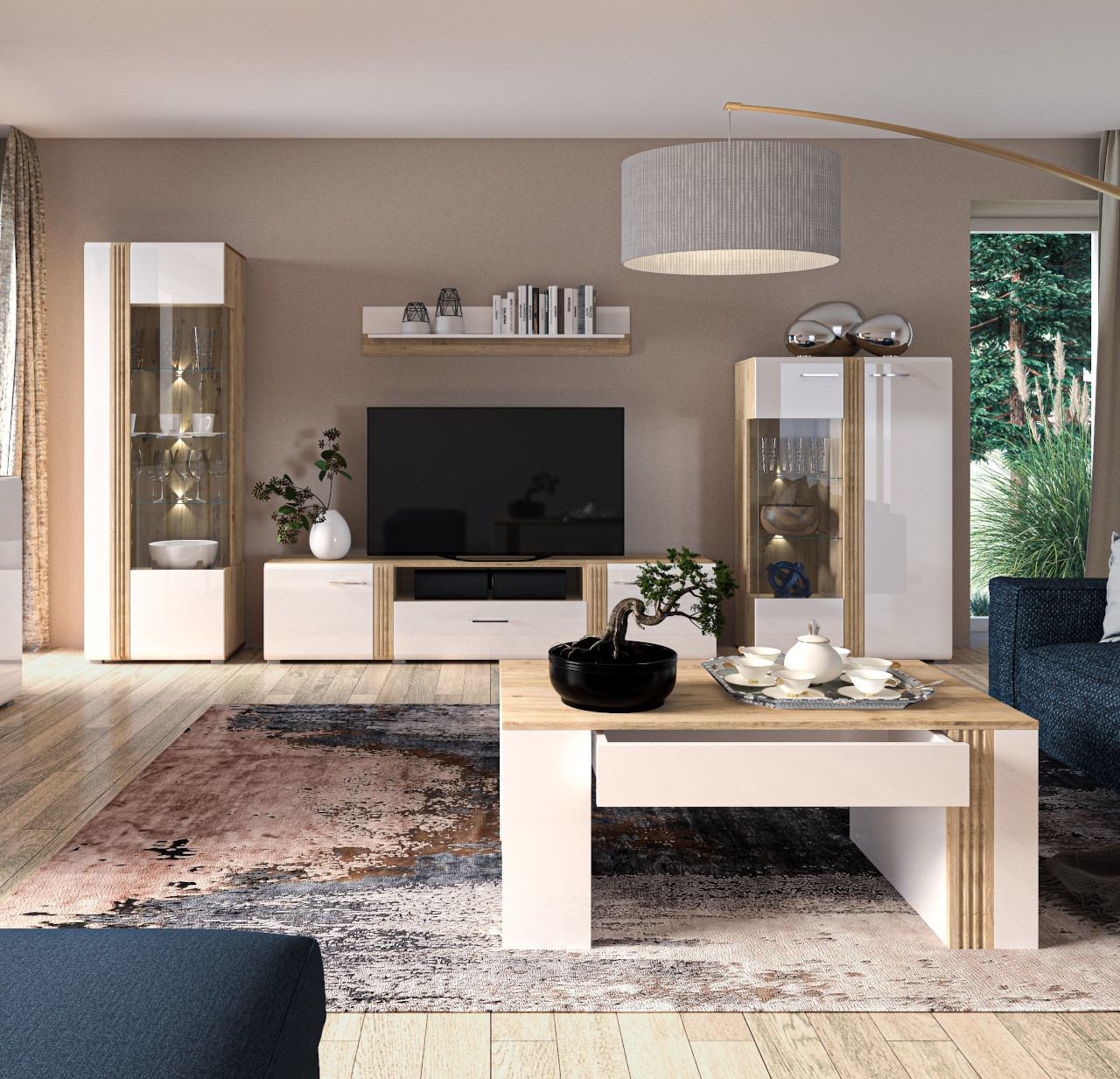 Wybarwienie: Dąb Castello / Biały połysk MDF