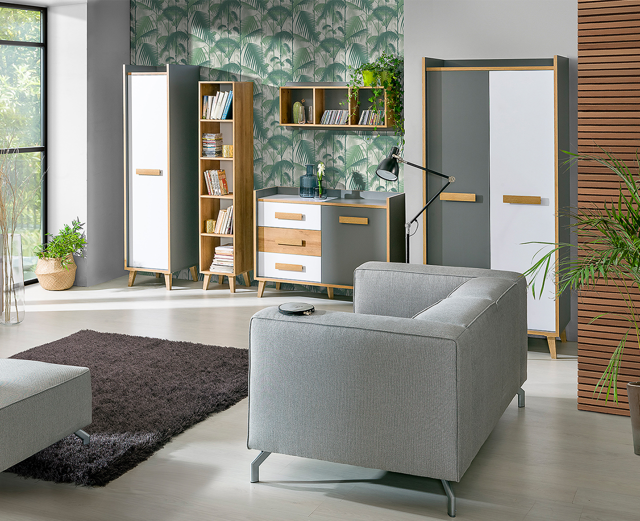 Wybarwienie: Antracyt / dąb riviera / biały brylantowy