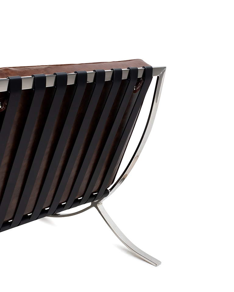 Charakterystyczne pikowanie dodają retro uroku, a chromowana, stalowa podstawa w lustrzanym wykończeniu podkreśla lekkość i nowoczesny charakter.