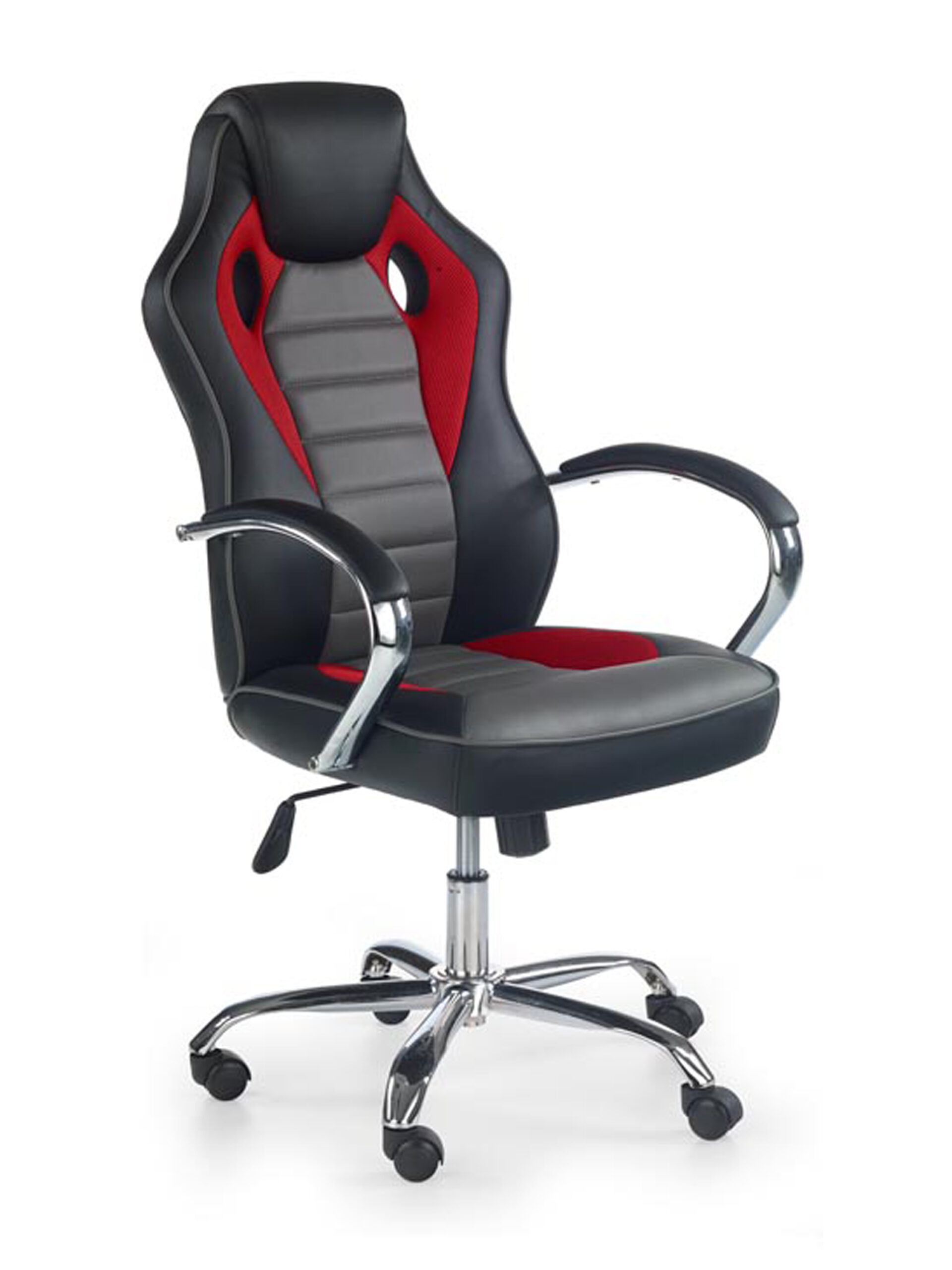 mechanizm TILT, wymiary: 61/48/109-119/43-53 cm, material: eco skóra, kolor: czarno-czerwono-popielaty