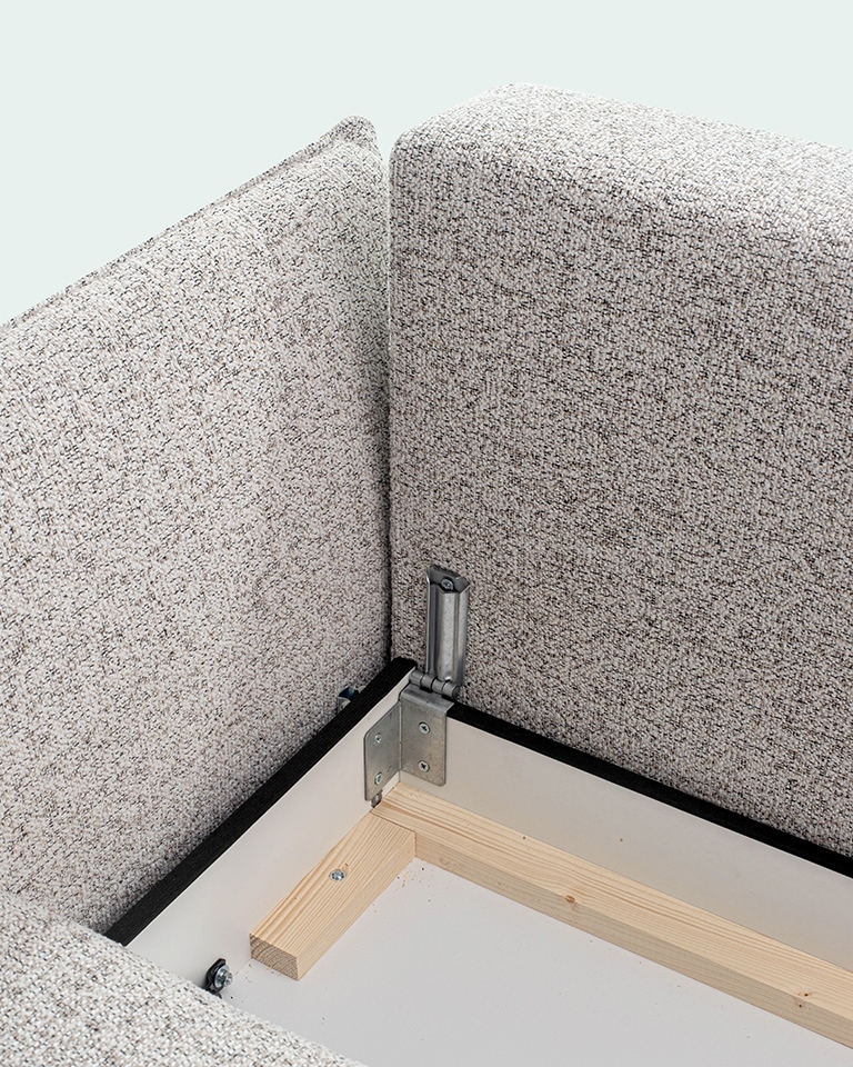 Sofa AURORA została wyposażona w pojemny schowek na pościel, który w znaczący sposób ułatwia organizację przestrzeni. To funkcjonalne rozwiązanie pozwala przechowywać wszystkie niezbędne tekstylia w jednym miejscu, zawsze pod ręką.