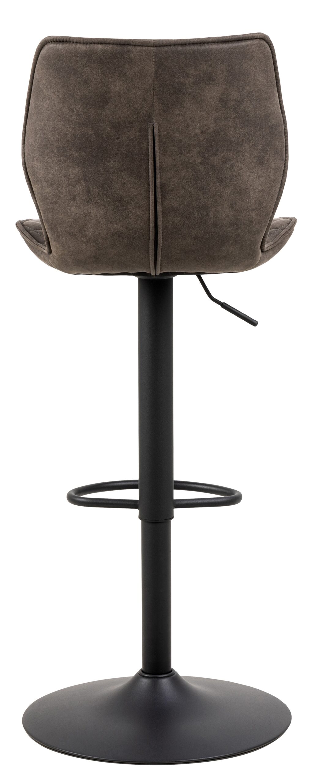 Stołek barowy Naomi to elegancki mebel do jadalni, kuchni czy restauracji. Posiada podstawę w formie jednej, metalowej nogi. Siedzisko i oparcie to pianka poliuretanwa tapicerowana tkaniną Preston fabric anthracite 96. Krzesło po wewnętrznej stronie posiada dekoracyjne geometryczne przeszycia. Stołek Naomi ma dodatkowe podparcie dla nóg, można również regulować jego wysokość (60-81cm). Wysokość oparcia: 34,5cm Szerokość oparcia: 44cm Głębokość oparcia: 37,5cm Ilość kartonów: 1 Wymiary kartonów: 58x46x43cm Waga kartonów: 9,9kg