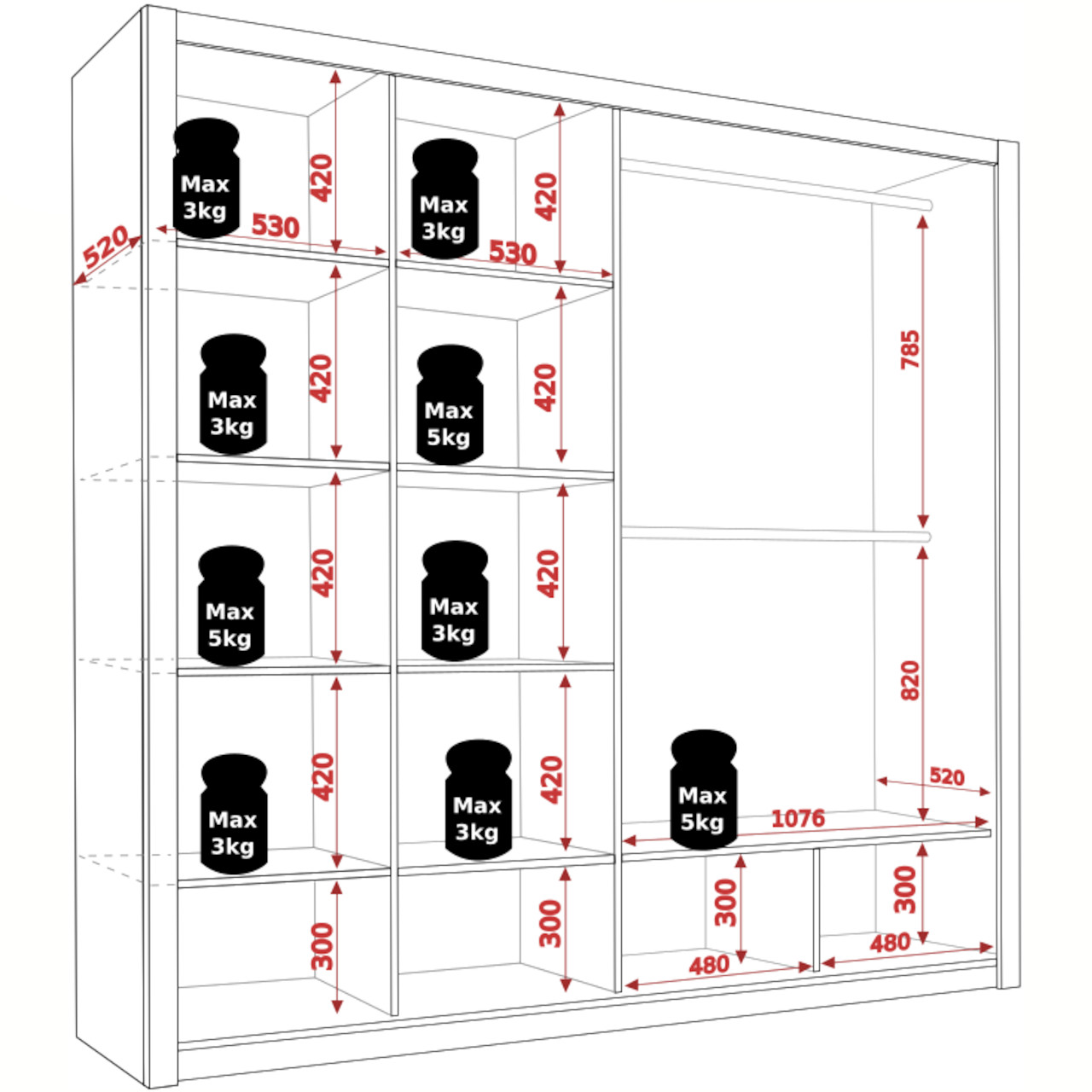 Szafa przesuwna z lustrem 220 BONEY BO11 (220/215/62)
