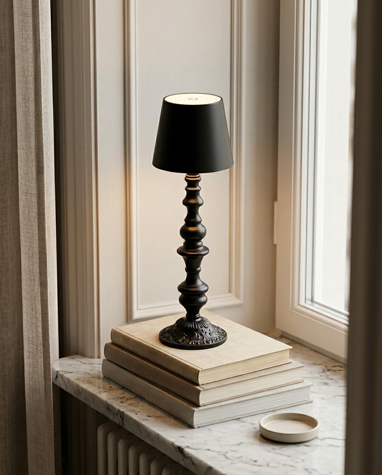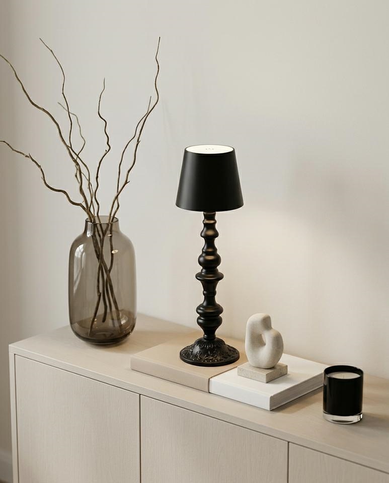 Smukła, dekoracyjna podstawa oraz minimalistyczny abażur tworzą ponadczasową formę, która doskonale wpisuje się w różne aranżacje wnętrz.