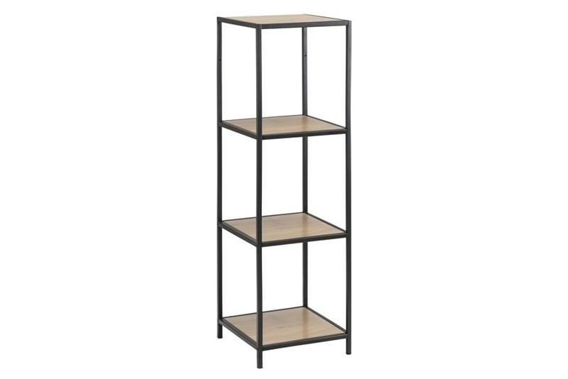 W naszej ofercie dostępne są różne meble z serii Seaford przeznaczone do pomieszczeń o różnym przeznaczeniu i zastosowaniu – tutaj nowoczesny regał w stylu industrialnym z 3 półkami w okleinie dębowej na czarnym metalowym stelażu, o wysokości 119,5 cm i szerokości 35 cm.