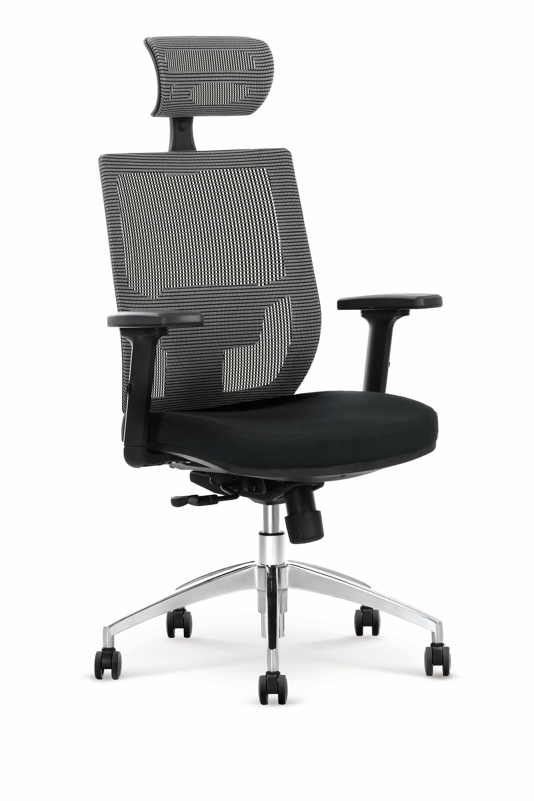 wymiary: 64/60/120-130/46/56 cm, funkcja MULTIBLOCK / aluminiowa podstawa / regulowany zagłówek / regulowane podłokietniki / wysuwane siedzisko, tkanina / siatka, kolor: czarno – popielaty