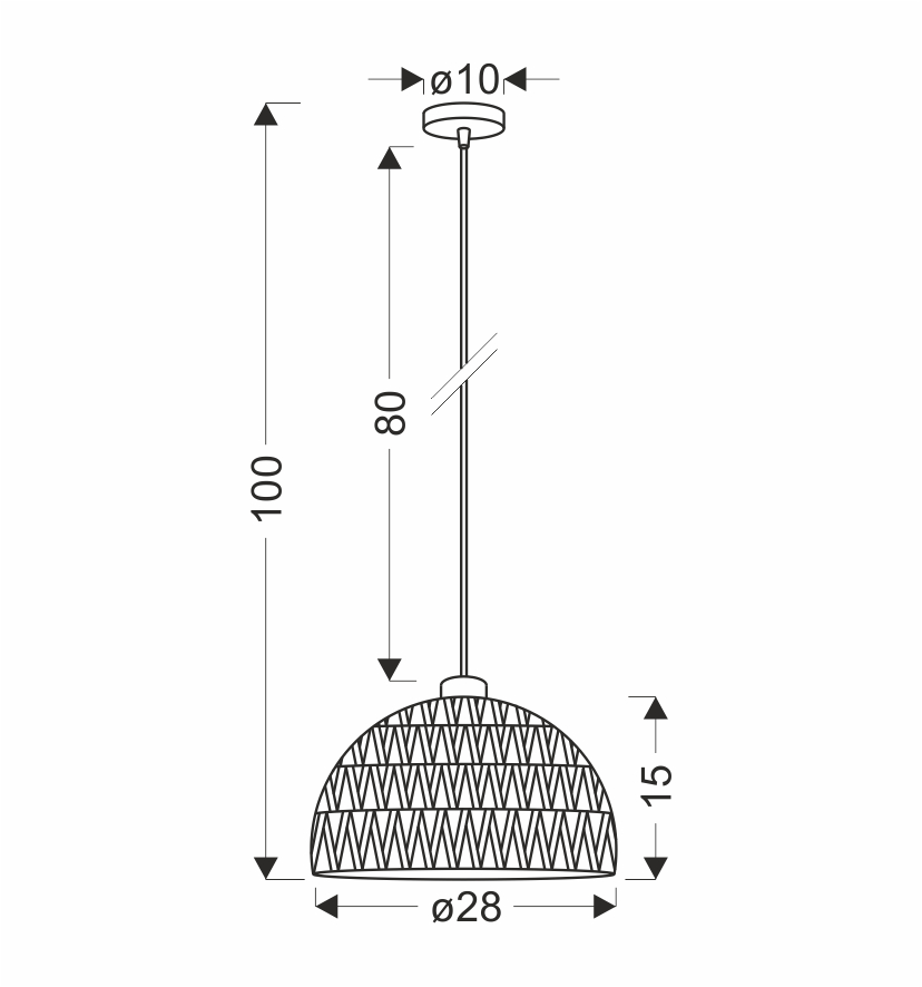 Materiał: zawiesie stalowe, abażur z plecionego sznurka