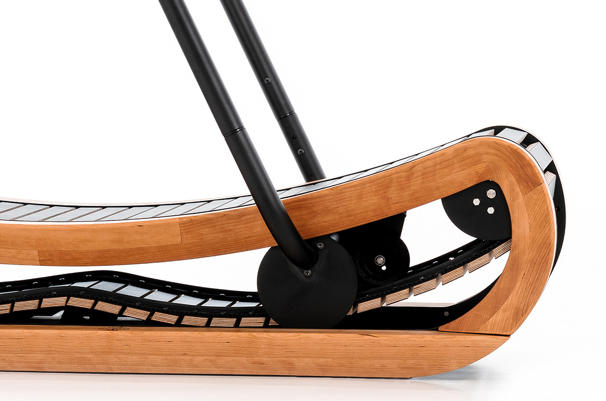 - Gładka rama z litego drewna – najbardziej estetyczną cechą bieżni Sprintbok NOHRD jest gładka, zakrzywiona rama wykonana z litego, twardego drewna. Funkcjonalna drewniana rama przyczynia się do redukcji drgań podczas pracy.