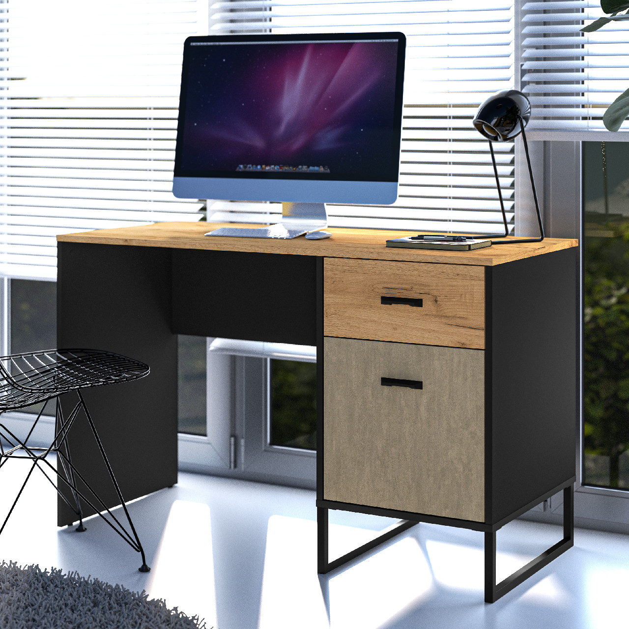 Wybarwienie: Dąb Craft Złoty / Czarny / Stal Premium