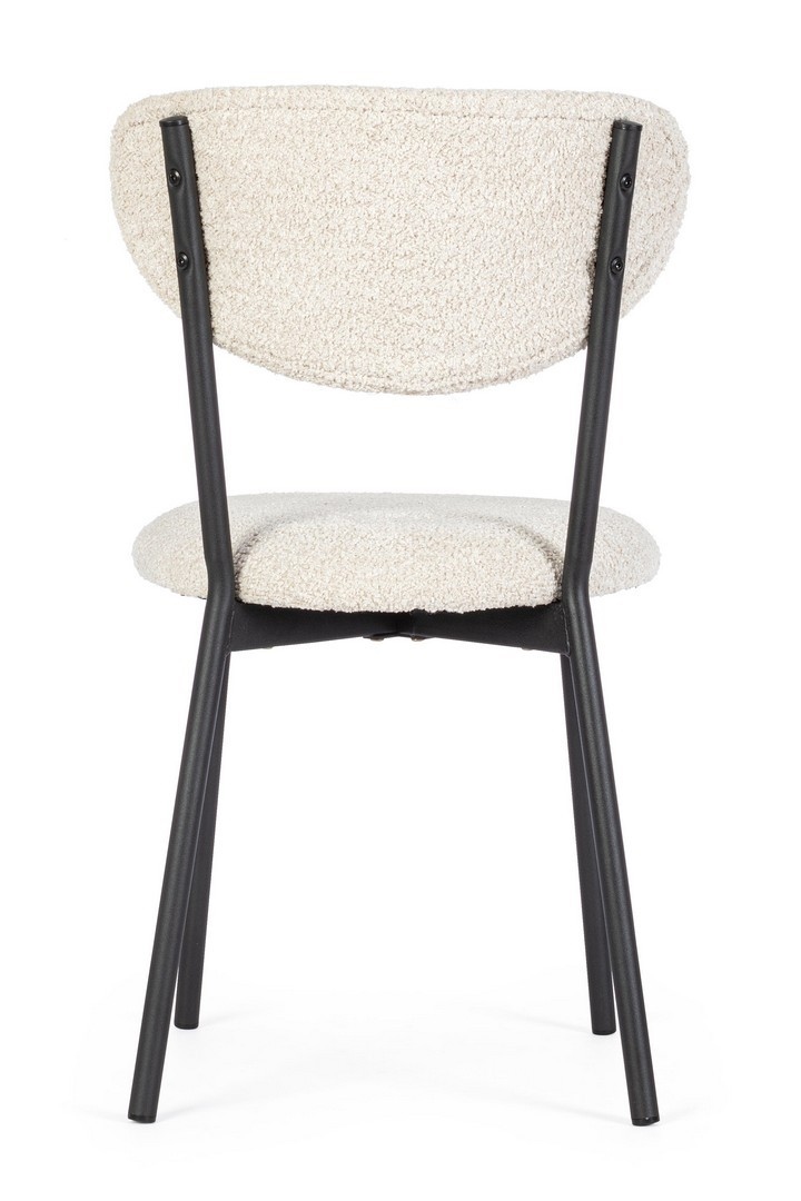 BIZZOTTO krzesło LUDMILLA beżowe. Harmonia współczesnego komfortu i subtelnej elegancji. Zaokrąglone kształty delikatnie nawiązują do stylu retro, jednocześnie idealnie wpisując się we współczesne trendy wnętrzarskie. Rama ze stali pokryta ochronną powłoką zapewnia wytrzymałość oraz odporność na uszkodzenia. Siedzisko i oparcie wykończone tkaniną o efekcie bouclé oraz wypełnione pianką poliuretanową zapewniają doskonały komfort, trwałość oraz idealne dopasowanie do kształtu ciała, zachowując przy tym swoją formę przez długi czas. Beżowa kolorystyka nadaje krzesłu uniwersalny i elegancki charakter, który łatwo dopasować do różnych aranżacji. Doskonale sprawdzi się zarówno w jadalni, jak i w przestrzeni wypoczynkowej. Wymiary: wys. 77,5 cm / szer. 47 cm / gł. 50 cm Waga brutto: 5,8 kg.