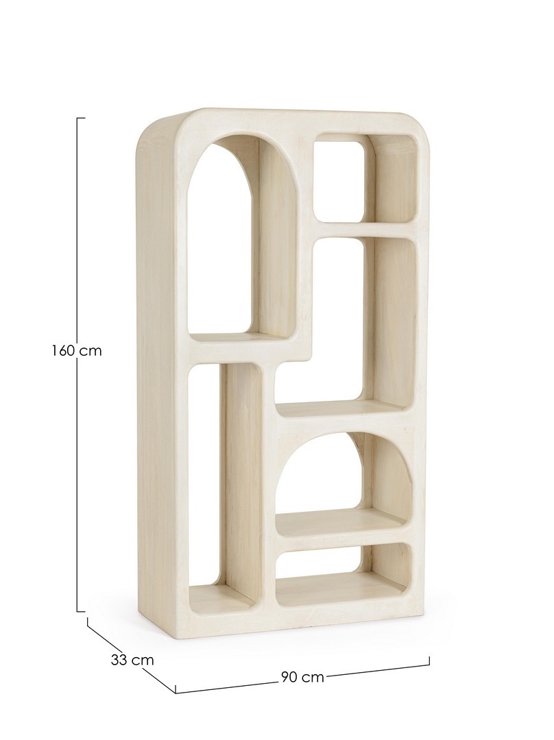 Intrygujący kształt, zawierający sześć półek, harmonijnie łączy funkcjonalność z niepowtarzalnym designem.