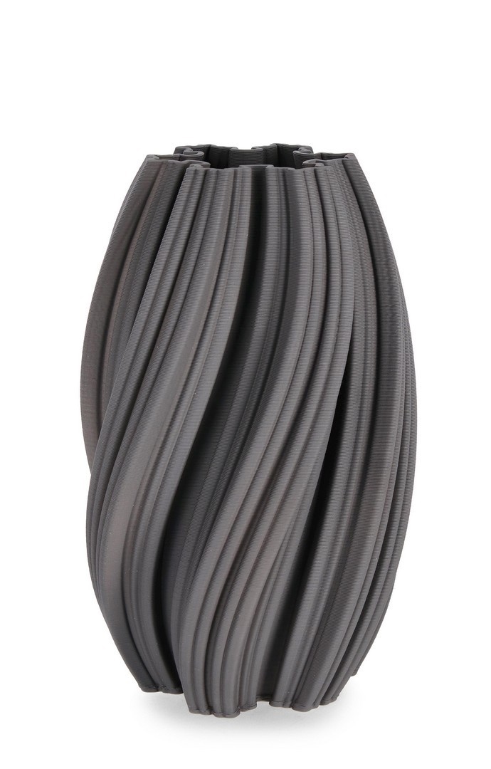 Wazon o oryginalnym wzorze i wyjątkowej, trójwymiarowej teksturze przyciąga wzrok także jako designerska rzeźba użytkowa.