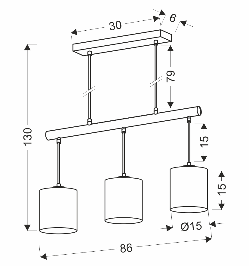 Materiał: zawiesie stalowe, abażur tkanina/PCV