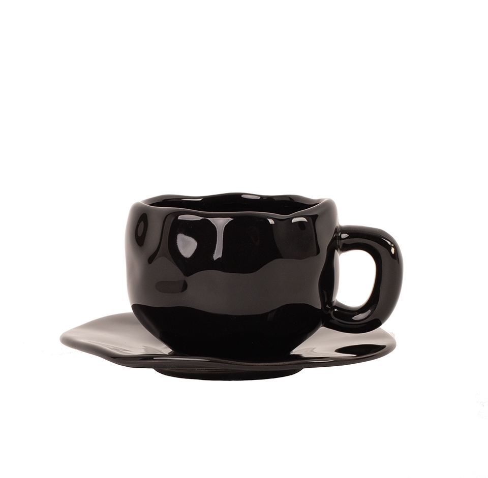 Filiżanka ze spodkiem SHP BIAŁA RÓŻA COCO czarna.