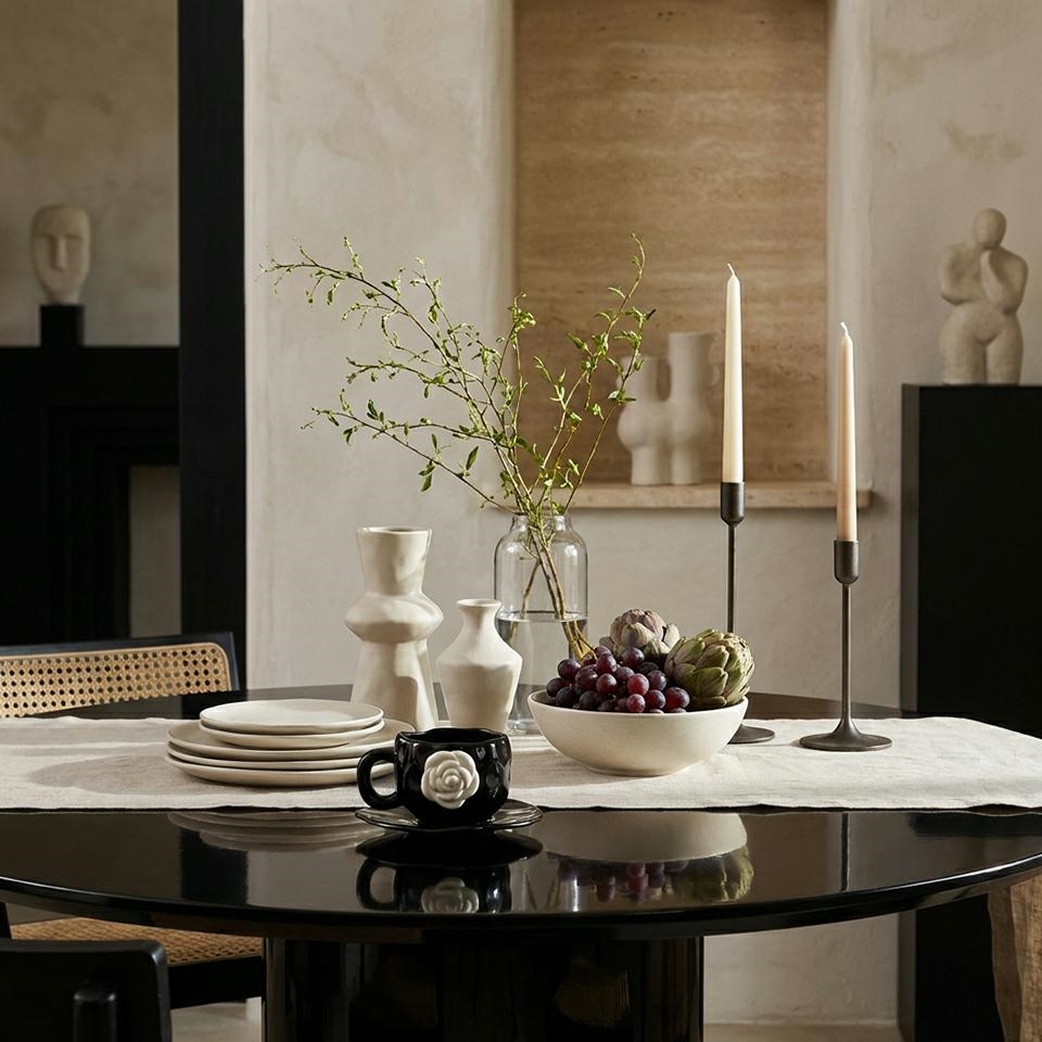 Wykonana z ceramiki w kontrastowym połączeniu czerni i bieli przyciąga uwagę dekoracyjnym detalem w kształcie kwiatu.