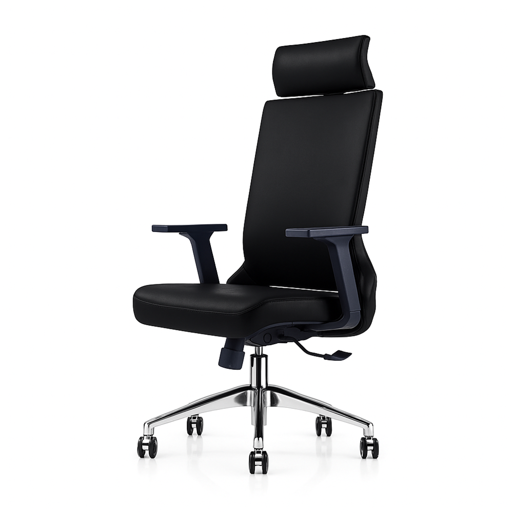 Fotel został zaprojektowany z myślą o wygodzie – także podczas wielogodzinnej pracy. Wysokie oparcie z wyprofilowanym zagłówkiem wspiera kręgosłup i kark, a regulowane podłokietniki pomagają znaleźć optymalną pozycję dla ramion.