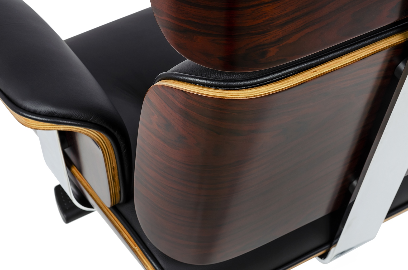 Fotel biurowy LOUNGE BUSINESS czarny z różanym drewnem.