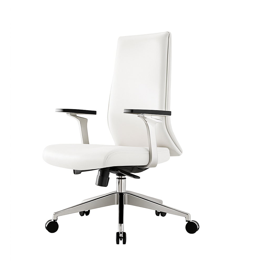 Minimalistyczna forma, lekkie linie i niska konstrukcja tworzą spójną całość, która nie dominuje we wnętrzu, lecz je uzupełnia. Pięcioramienna podstawa zapewnia stabilność, a ażurowe podłokietniki dodają wizualnej lekkości. Tapicerka – dostępna w wersji ze skóry naturalnej lub ekologicznej – podkreśla profesjonalny i ponadczasowy charakter mebla. Całość dopełniają subtelne detale, które świadczą o przemyślanym projekcie.
