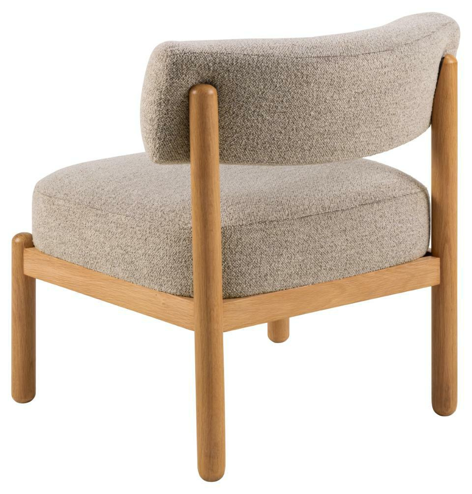 Fotel wypoczynkowy Burley, stworzony z myślą o stworzeniu nowoczesnego, skandynawskiego klimatu w Twoim domu, oferuje estetykę i wygodę. Wykonana z wytrzymałego, zaokrąglonego drewna dębowego, niskoprofilowa lakierowana rama jest uzupełniona sprężynami kieszeniowymi, zapewniającymi większy komfort. W połączeniu z beżową tapicerką bouclé, stanowi nowoczesne rozwiązanie do siedzenia, pasujące do współczesnych domów.