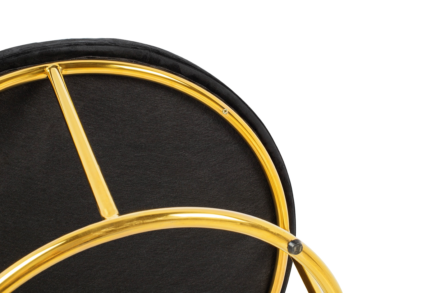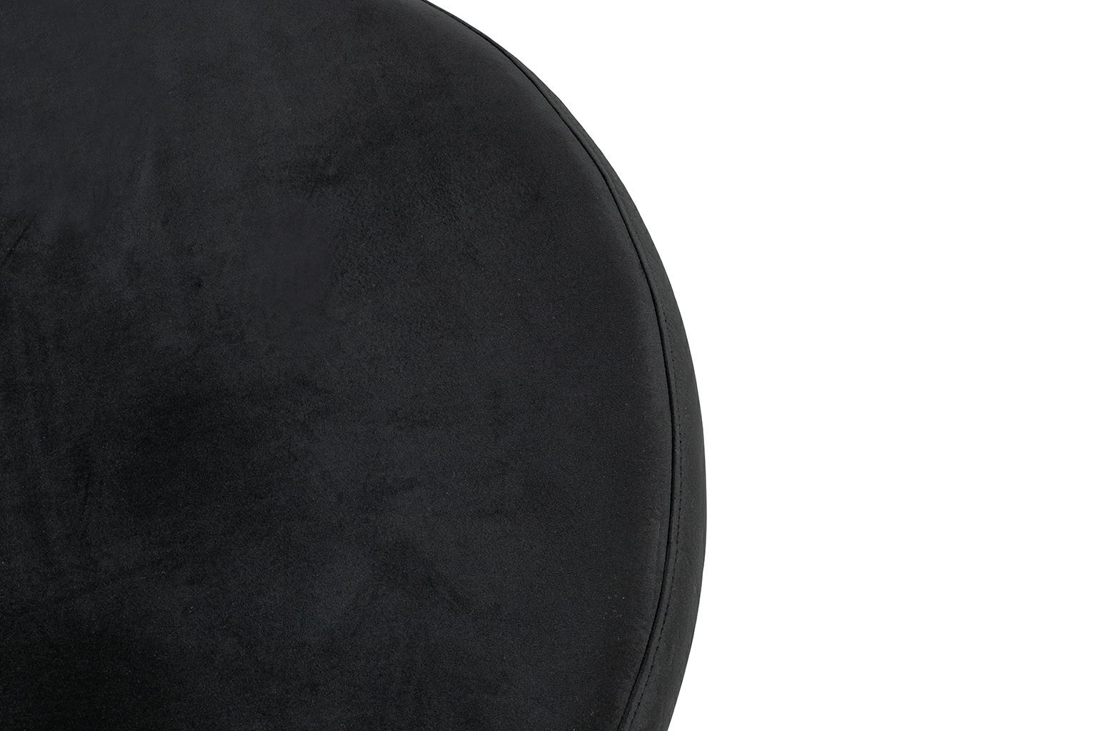 We wnętrzu kulistej formy znajduje się poduszka tapicerowana przyjemną welurową tkaniną w kolorze czarnym.