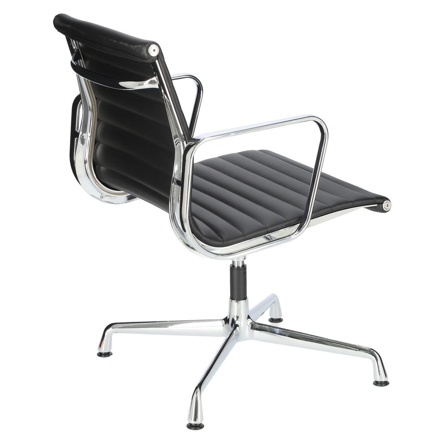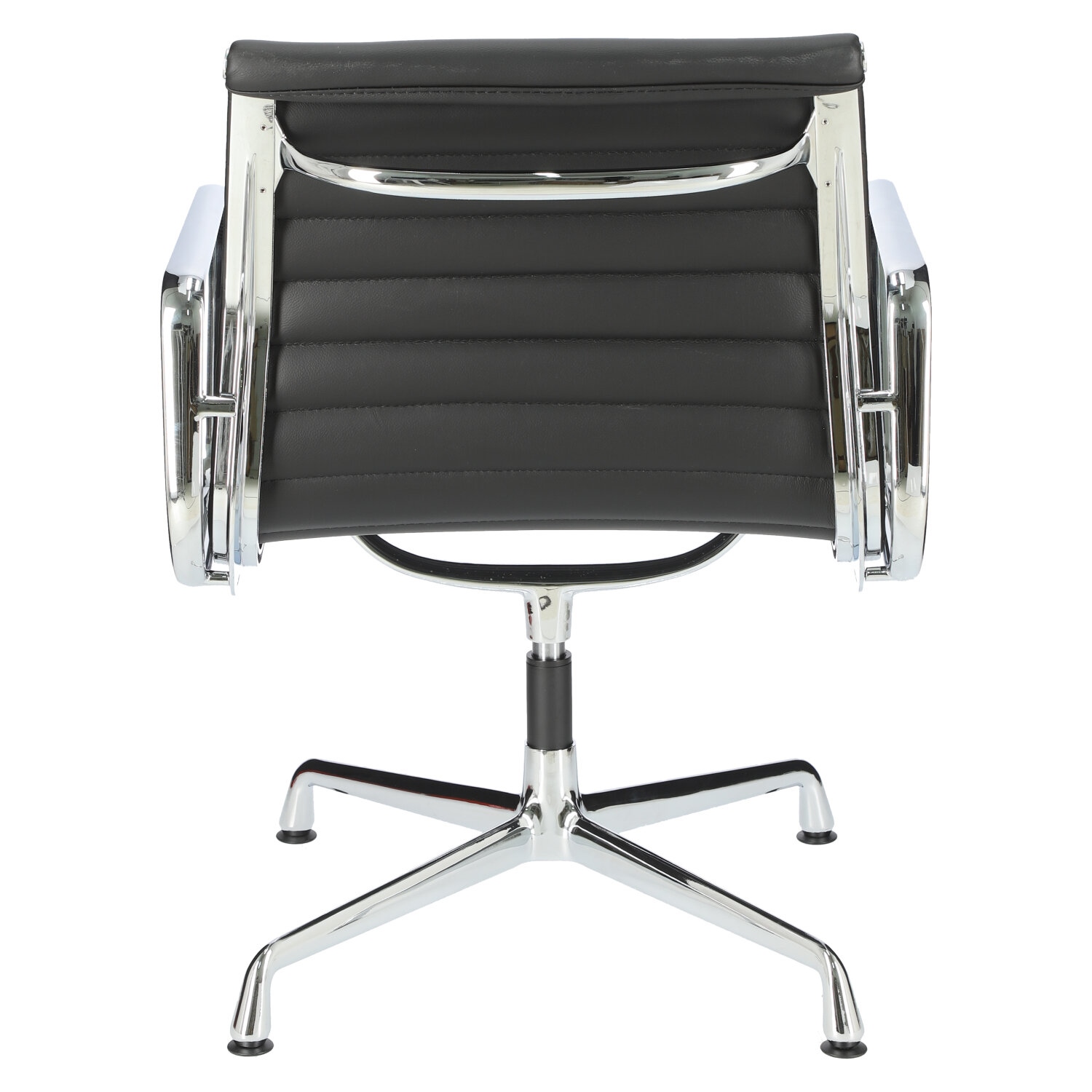 Fotel konferencyjny to nieodzowny element każdej sali konferencyjnej. Fotel CH1081T to przede wszystkim wysoka jakość wykonania oraz ponadczasowy design. Głównym założeniem tego fotela była lekkość formy i wygoda użytkownika. Dlatego materiał, na którym się siedzi jest zawieszony w powietrzu między dwoma metalowymi profilami. Siedzisko zostało zrobione ze skóry ekologicznej w czarnym kolorze. Poziome przeszycia na siedzisku dodają fotelowi klasyczny wygląd. Chromowane elementy fotela dodają całości eleganckiego wyglądu. Obrotowa baza na nóżkach wykonana jest również z chromowanego metalu. Krzesło nie posiada mechanizmu regulacji wysokości.
