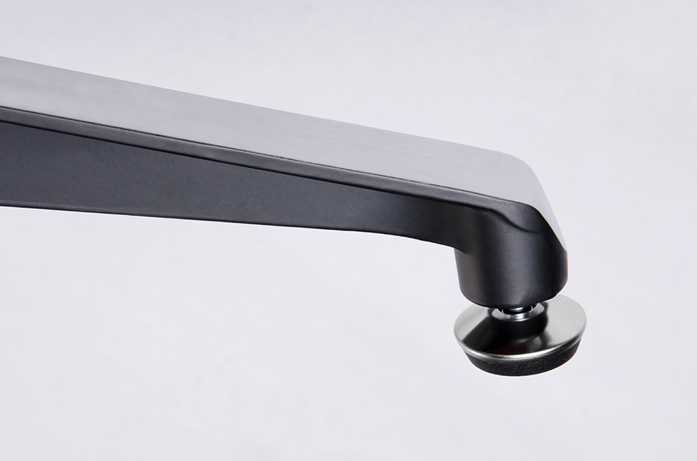 Dla podkreślenia elegancji, obie podstawy oraz łączenia oparcia w fotelu są dodatkowo spolerowane na wierzchniej stronie.