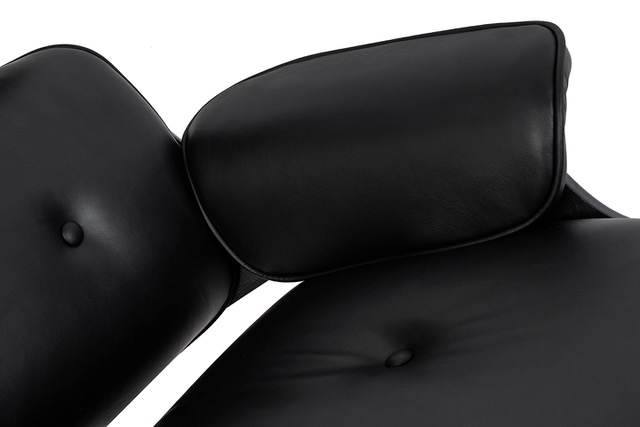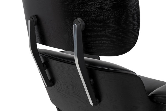Cały fotel tapicerowany jest naturalną włoską skórą w kolorze czarnym. Korpus fotela jak i podnóżka został wykonany z giętego na ciepło drewna