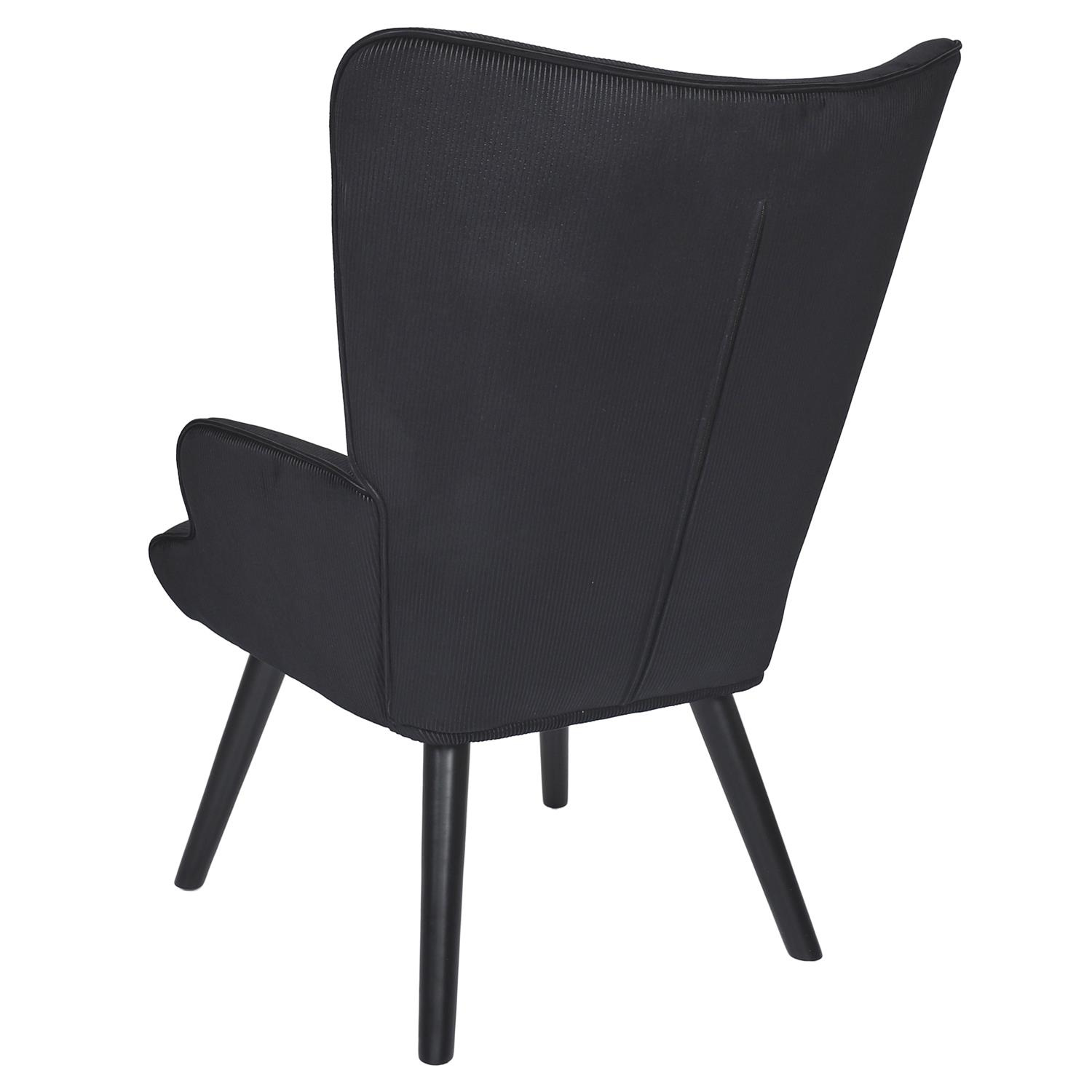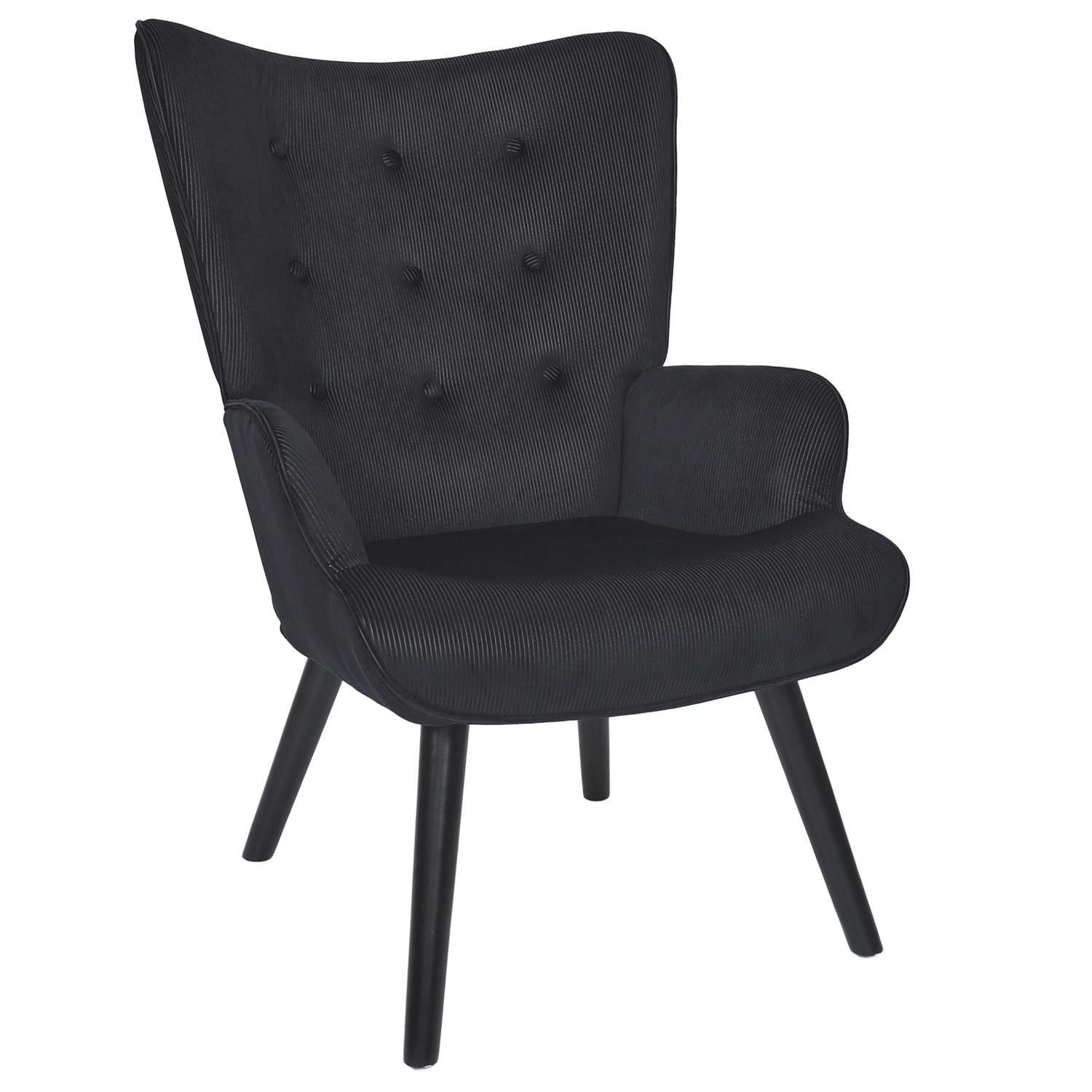 Wygodny fotel uszak w czarnej, sztruksowej tkaninie to mebel zarówno do spokojnego wypoczynku jak i do czytania książek lub karmienia piersią. Fotel o niskim siedzisku z głębokim oparciem gwarantuje wyciszenie oraz komfort. Fotel na drewnianych, toczonych, kauczukowych nóżkach w kolorze czarnym idealnie pasuje do wnętrz w stylu nowoczesnym, loftowym jak i skandynawskim. Ozdobna, sztruksowa tkanina wykonana z 100% poliestru została ozdobiona guzikami na oparciu. Fotel waży 9 kg. Max. obciążenie fotela 120kg. Wymaga łatwego montażu (dokręcenie nóg). Nie sztapluje się. Nie nadaje się do użytku na zewnątrz. Grubość pianki na siedzisku 24kg/m3. Grubość pianki na oparciu: 18kg/m3