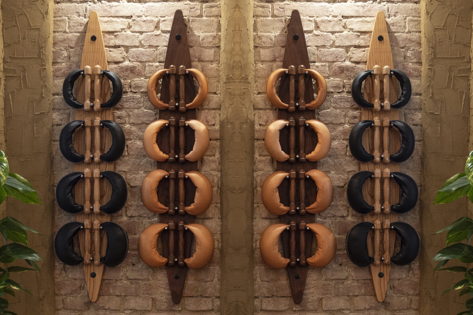 Hantle wykonane z litego drewna i ręcznie szytej prawdziwej skóry.