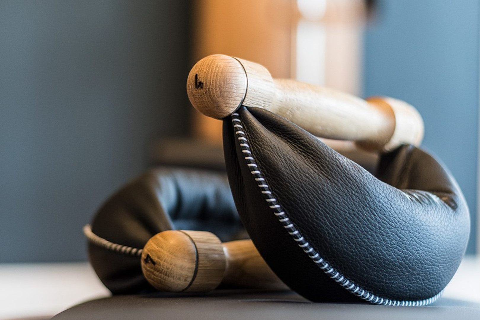 Hantle wykonane z litego drewna i ręcznie szytej prawdziwej skóry.
