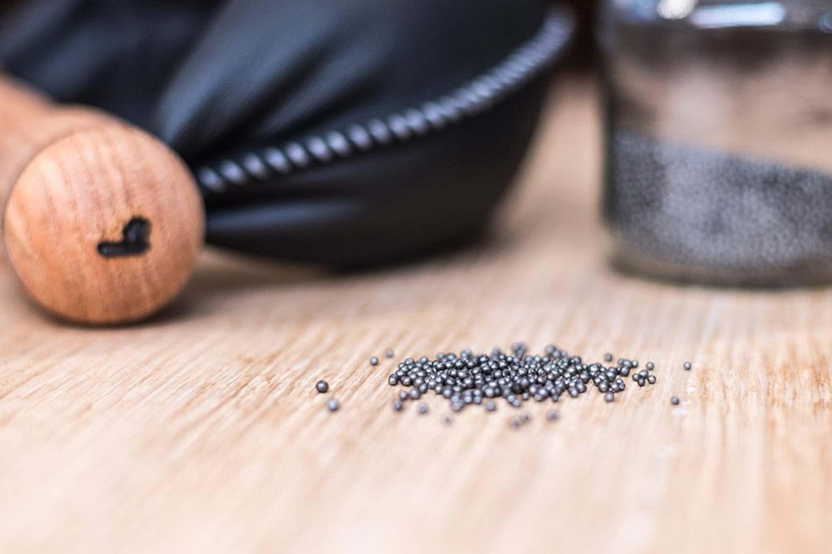 - Granulki żelaza jako wypełnienie – Ciężar hantla SwingBell ustalony jest dzięki precyzyjnie zważonym granulkom żelaza. Małe granulki huśtają się wraz z ruchem.