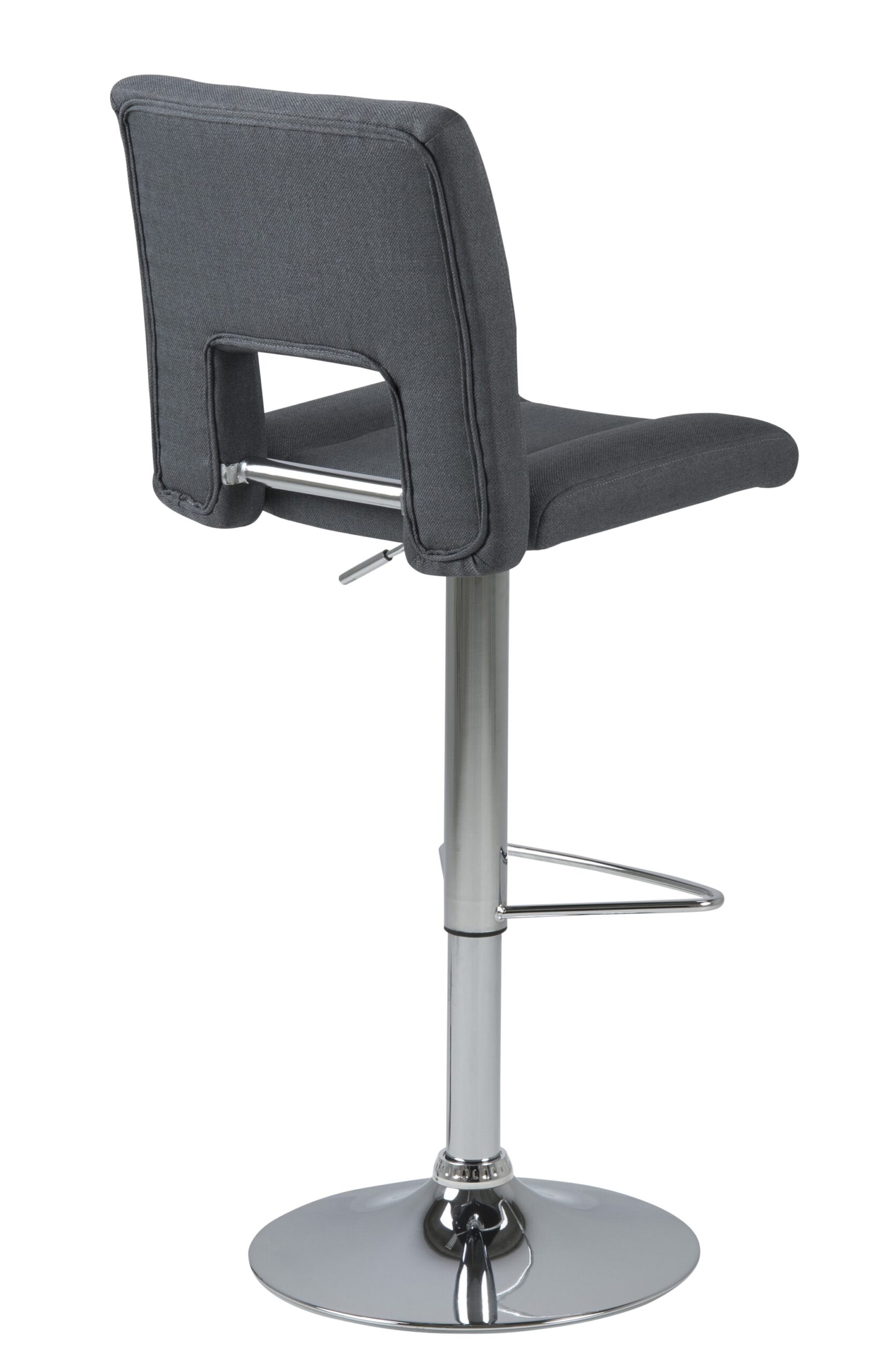 Hoker Sylvia to mebel do nowoczesnego baru lub jadalni. Siedzisko z pianki poliuretanowej pokryte jest tapicerką z tkaniny Corsica fabric dark grey 20. Podstawę stanowi długa, smukła noga ze szczotkowanego metalu w kolorze chromu. Hoker posiada wysokie, wygodne oparcie oraz dodatkowe podparcie dla nóg. Stołek posiada regulację wysokości. Ilość kartonów: 1 Wymiary kartonów: 60x44x44cm Waga kartonów: 10,5kg