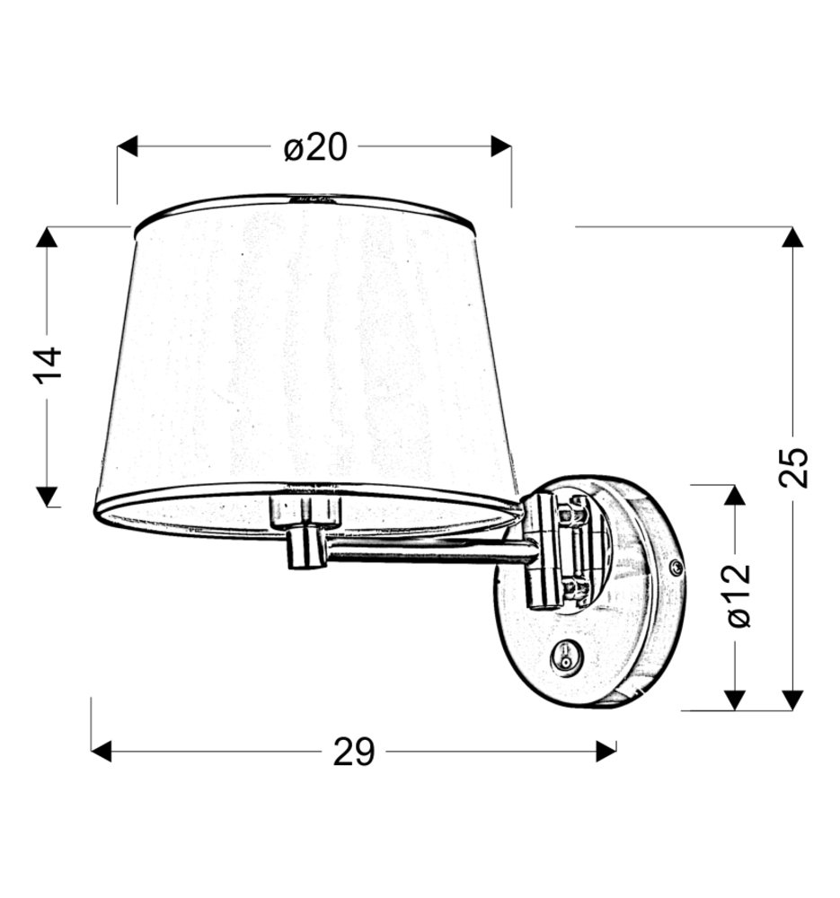 Materiał: podstawa stalowa, abażur tkanina/PCV