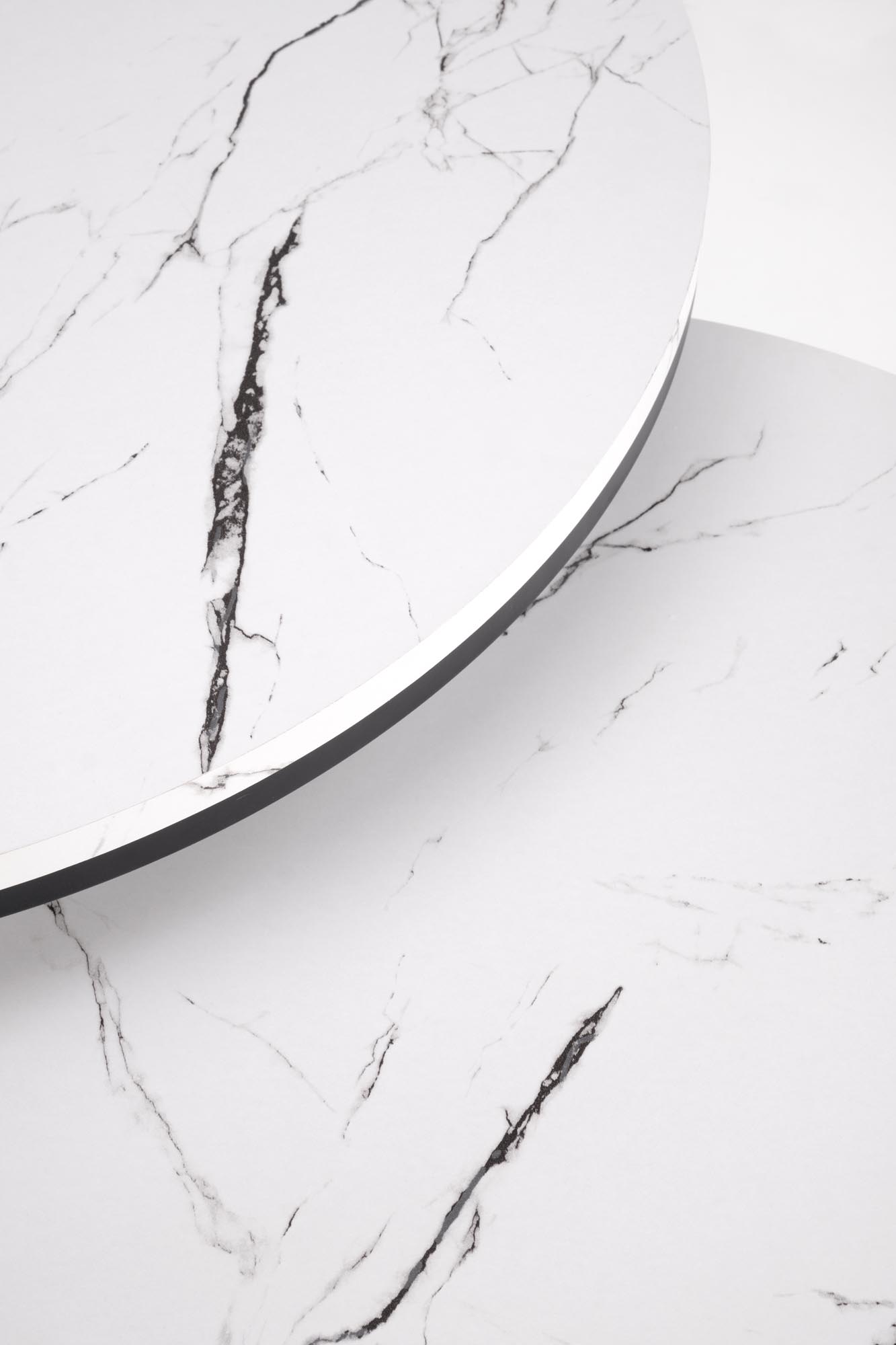 wymiary: 79/47 cm oraz 59/37 cm; zestaw 2 ław, materiał: MDF okleinowany / stal malowana proszkowo, kolory: biały marmur / czarny