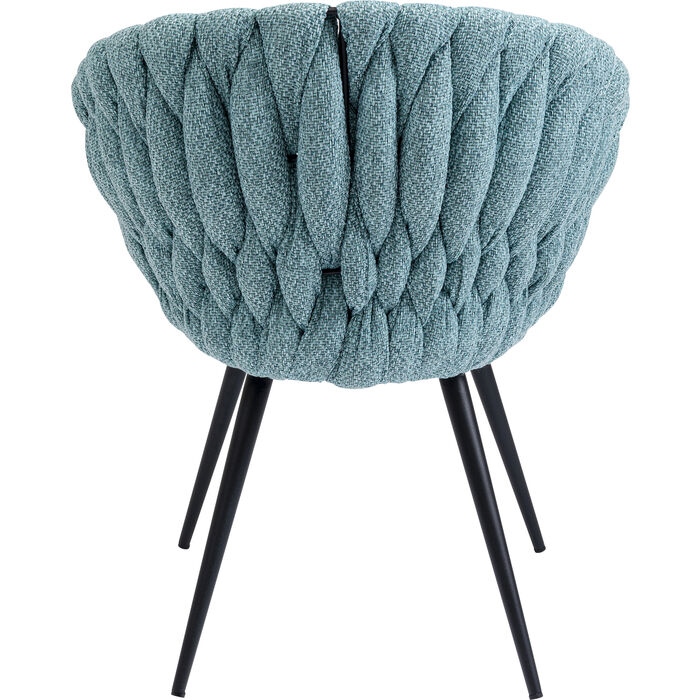 KARE krzesło KNOT niebieskie. Nowoczesny, elegancki design, który musisz mieć! Oparcie o ozdobnym splocie wykonano z przyciągającej wzrok niebieskiej tkaniny poliestrowej. Oryginalnego charakteru dodaje ciemnoniebieskie siedzisko wykonane z ekoskóry w stylu Vintage. Smukłe nóżki wykonano z klasycznej czarnej stali. Dostępne różne kolory. Wymiary: wys. 81 cm / szer. 62 cm / gł. 59 cm Wysokość do krawędzi siedziska: 48 cm Waga: 8,3 kg.