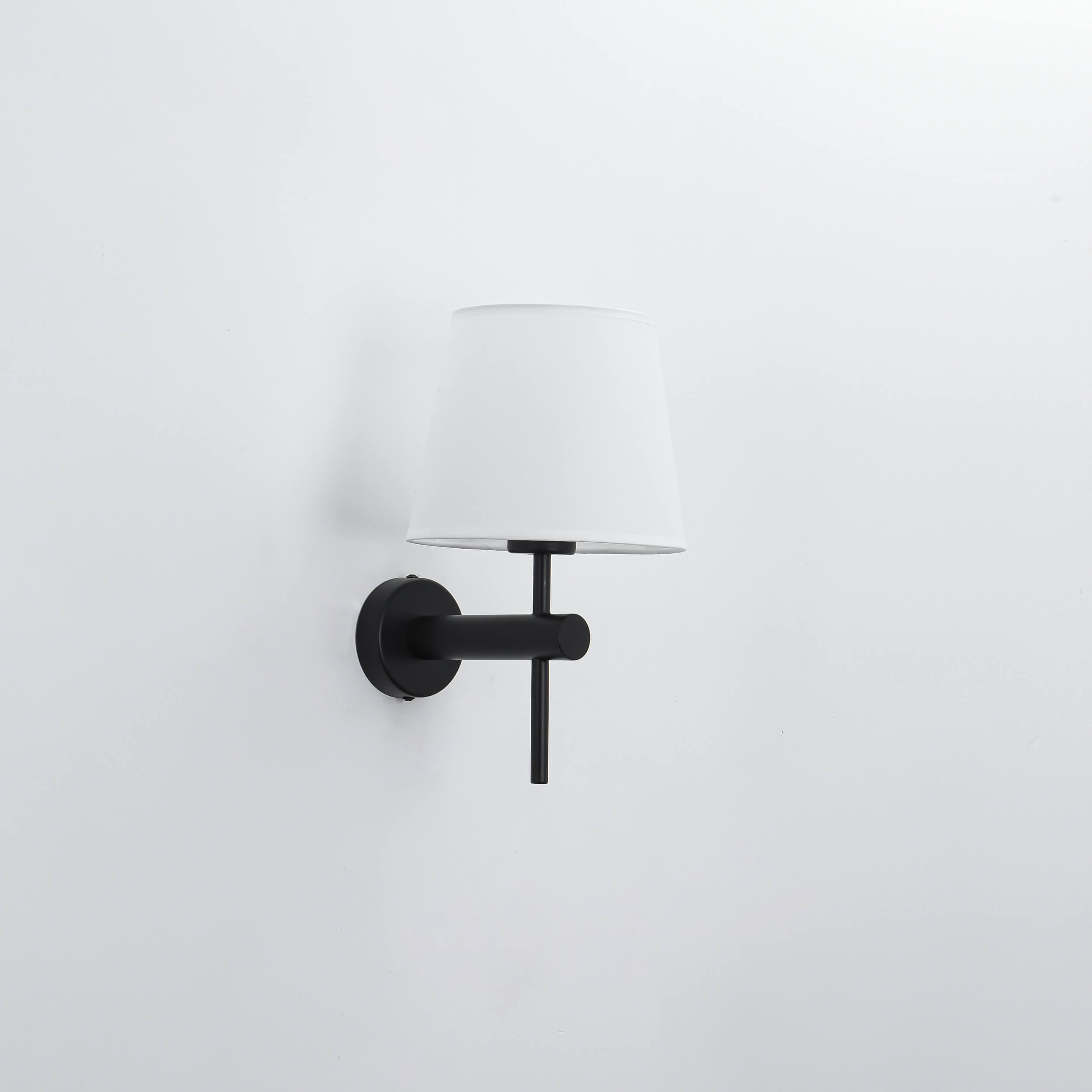 Kinkiet Tivoli to elegancki czarny kinkiet wykonany z metalu, z białym abażurem z delikatnej tkaniny. Jego prosty, ponadczasowy design doskonale wpasuje się w różnorodne aranżacje. Dzięki uniwersalnej kolorystyce idealnie komponuje się z różnorodnymi wnętrzami, dodając im subtelności i wyrafinowania.