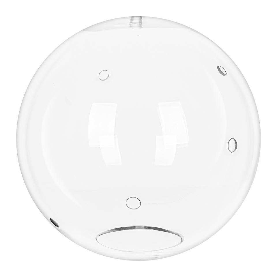 Okrągły klosz wykonany ze szkła o średnicy 30 cm z pięcioma bocznymi otworami o średnicy 1,4 cm.