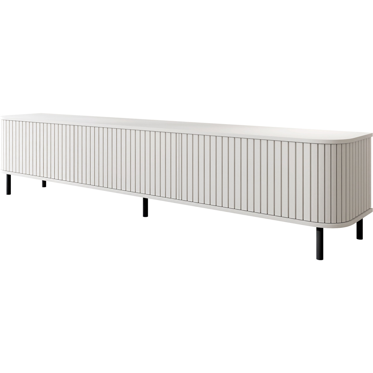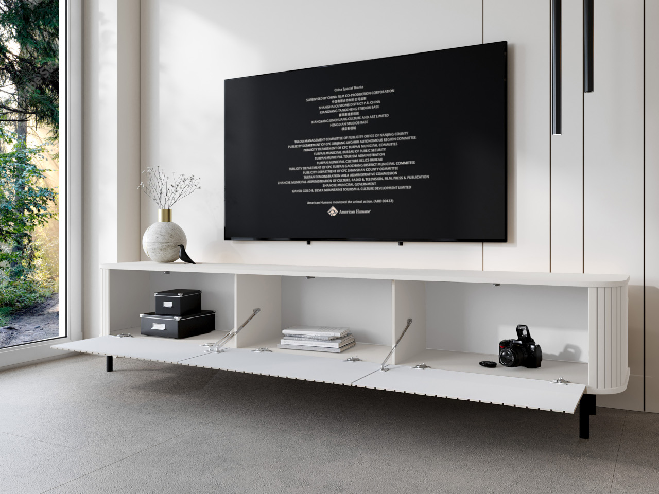 Komoda RTV ZYLIO 215N biały z ryflowanym frontem – design, który urzeka od pierwszego spojrzenia