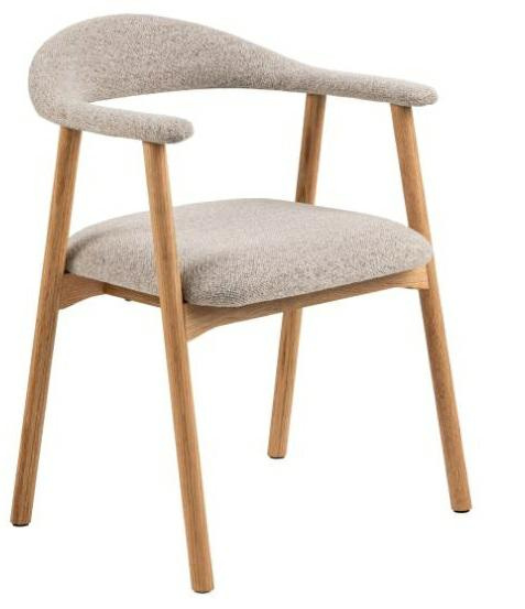 Krzesło Addi z podłokietnikami to krzesło w stylu boho z tapicerowanym siedziskiem i oparciem. Wykonane ono zostało z olejwanego, litego drewna dębu. Stabilna podstawa oraz idealnie wyprofilowane oparcie gwarantuje komfort siedzenia. Tkanina jaką użyto to siedziska i oparcie to grubopleciony materiał o kolorze beżowym Monza 60. Ciekawa tekstura i bardzo gruby splot materiału tworzą idealne połączenie z naturalnymi słojami drewna nóg. Max. obciążenie 110kg.